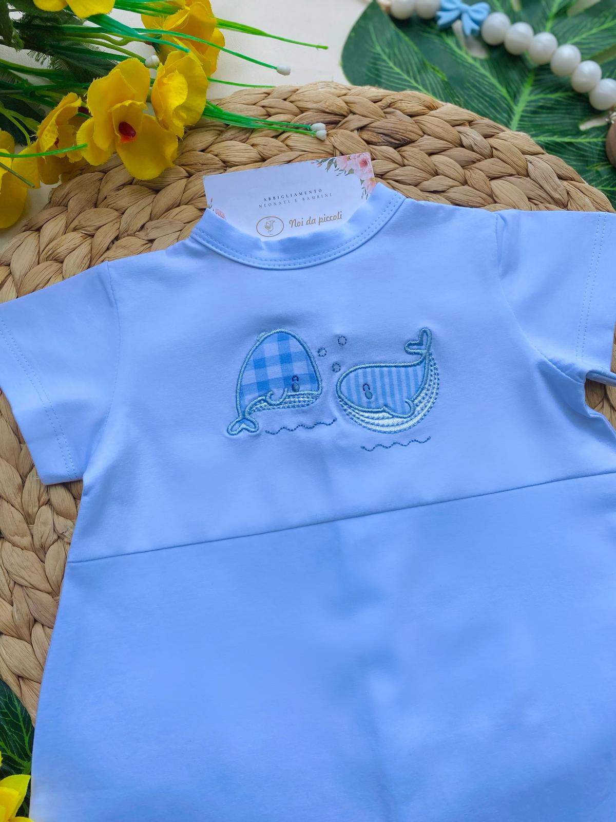 OVERALLS WITH WHALE SHIRT IN YARN AND COTTON