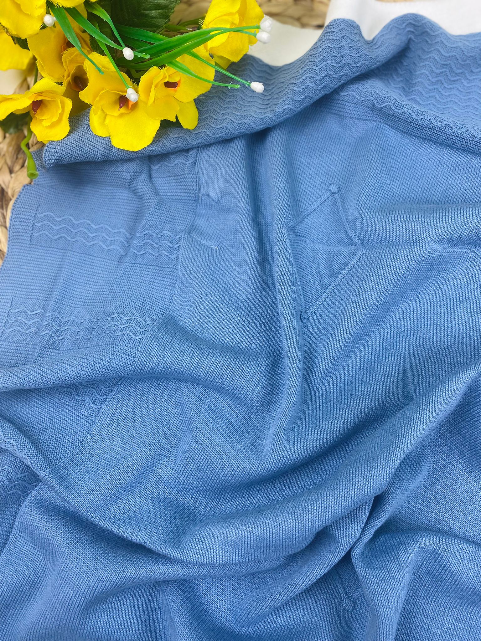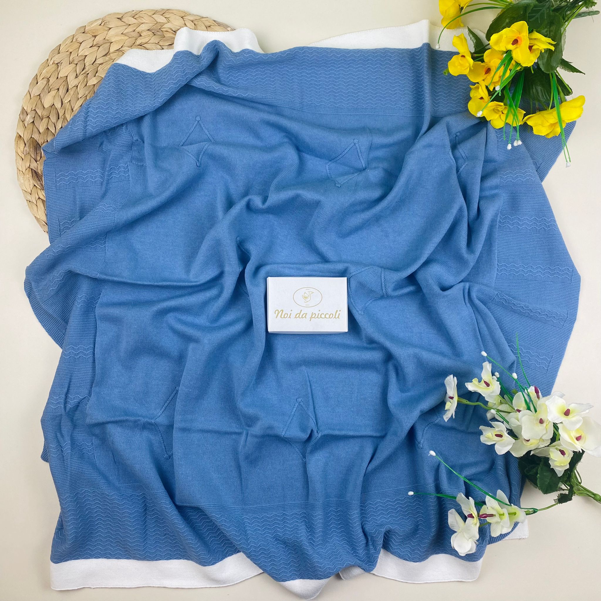 Wrap your little one in a soft embrace with this adorable cotton blanket. With a delicate blue background, the refined embroidery dances sweetly, adding a romantic touch to every moment. The light and airy texture makes this blanket ideal for wrapping your baby in warmth and tenderness, perfect for his sweetest dreams. Choose an accessory that combines elegance and practicality, making every moment special.