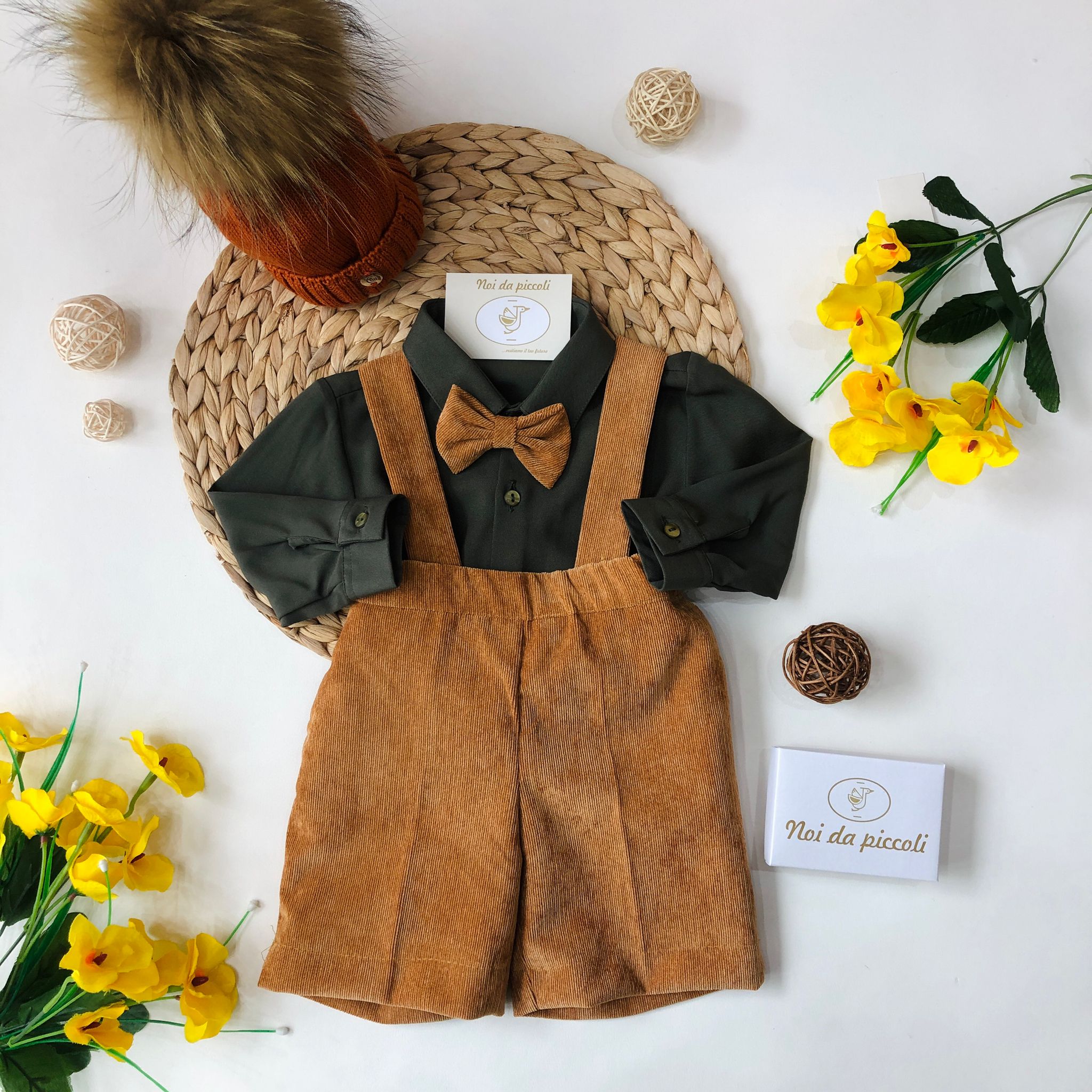 BROWN CORDUROY OVERALLS WITH GREEN SHIRT