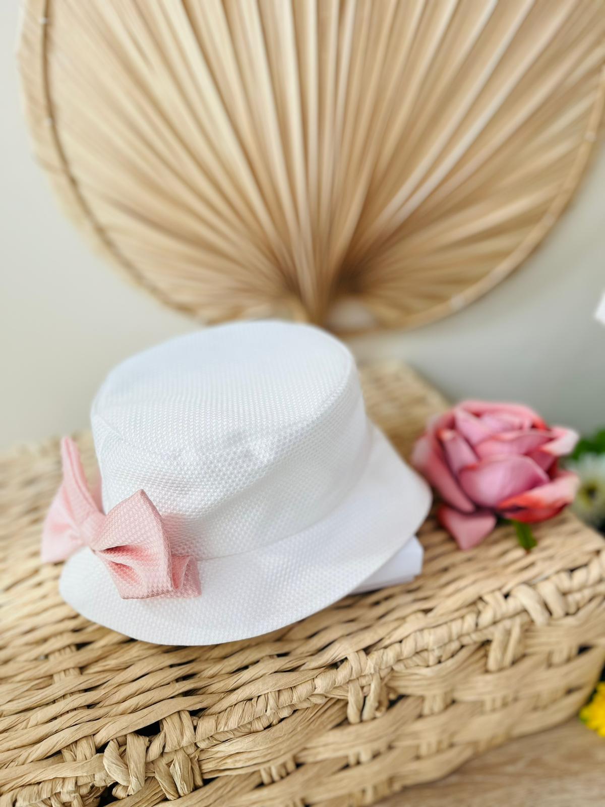 WHITE HAT WITH PINK AND BEIGE FLOWERS