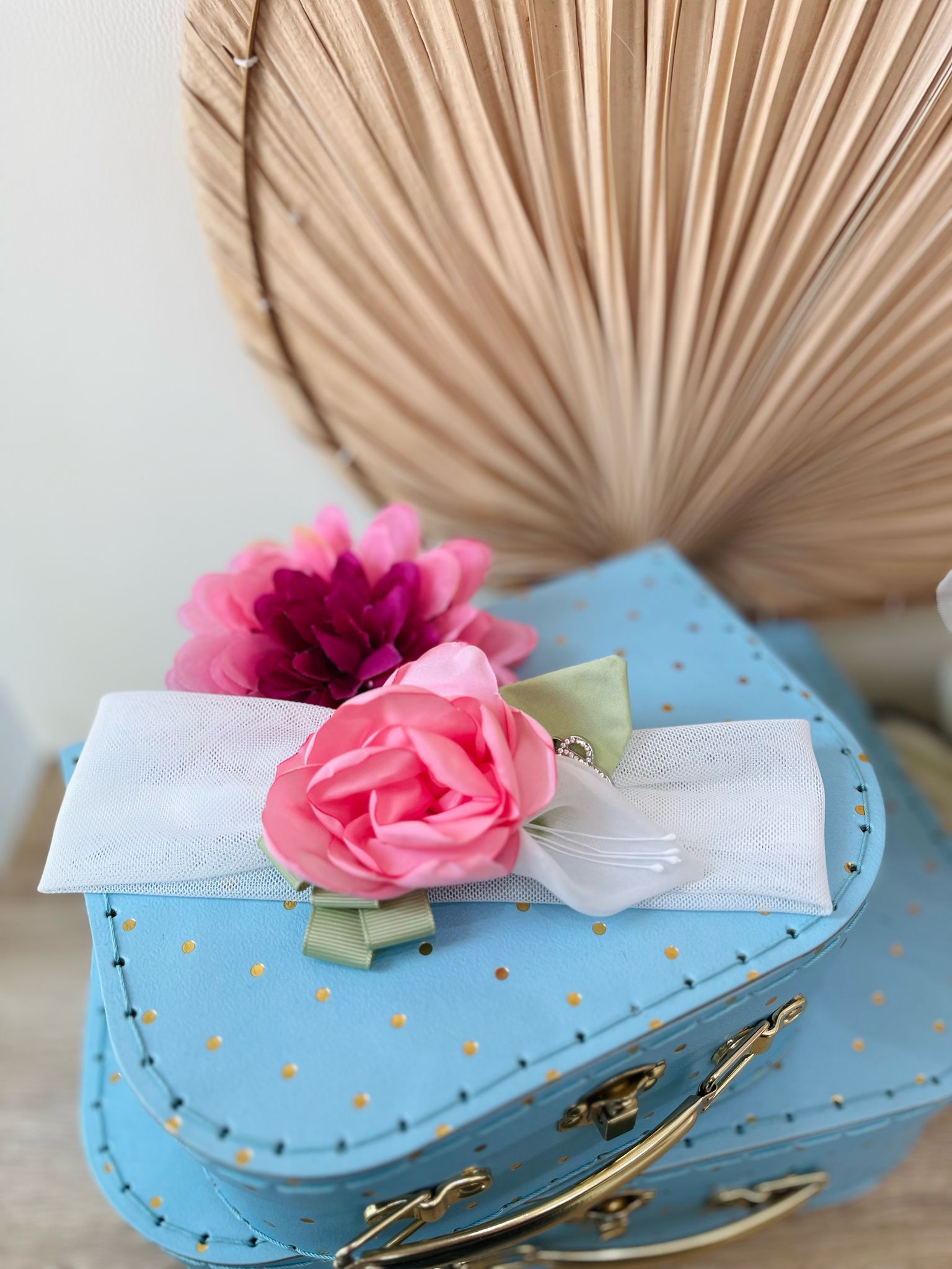 HEADBAND WITH SKY FLOWERS AND POMPOM