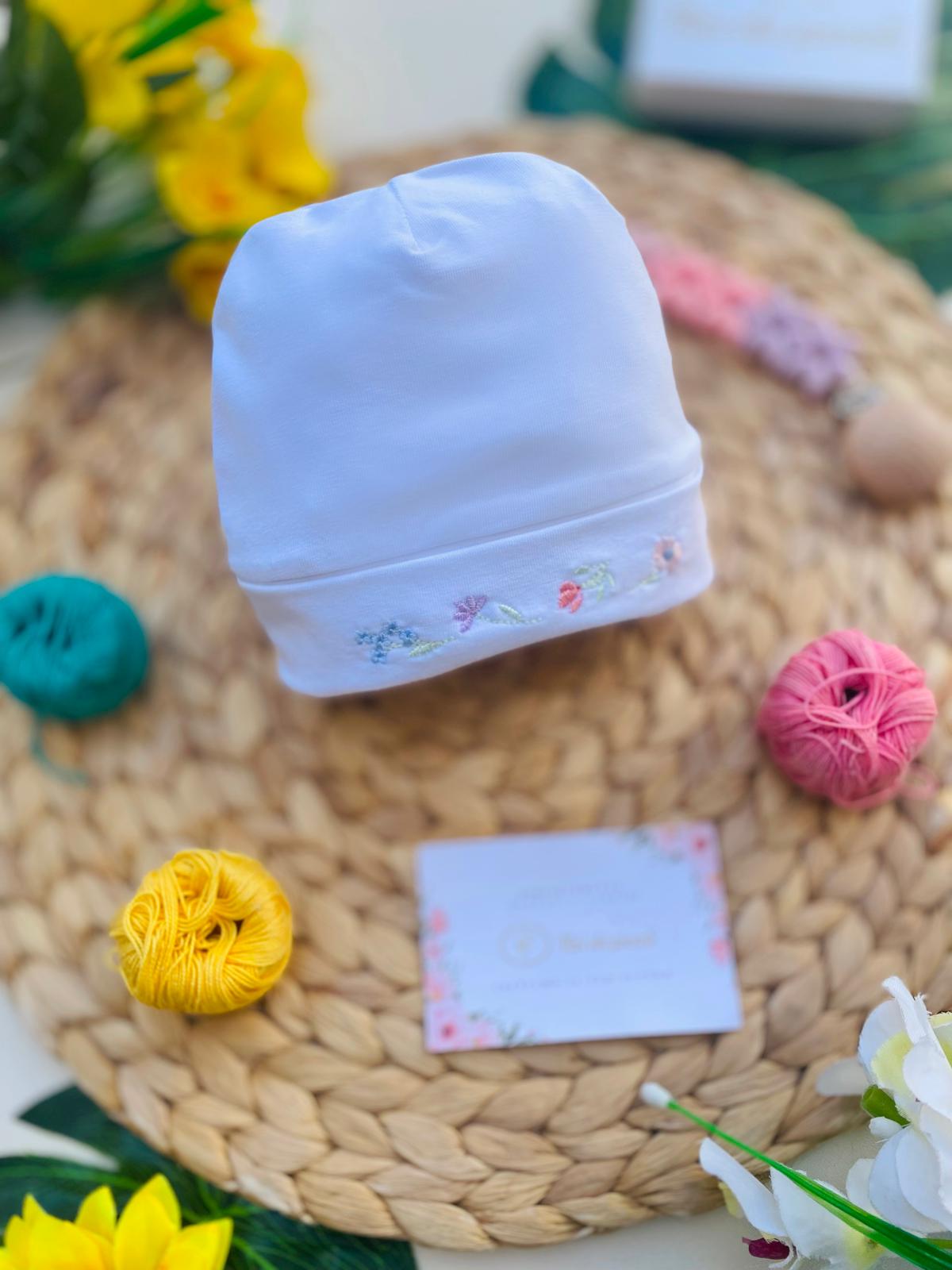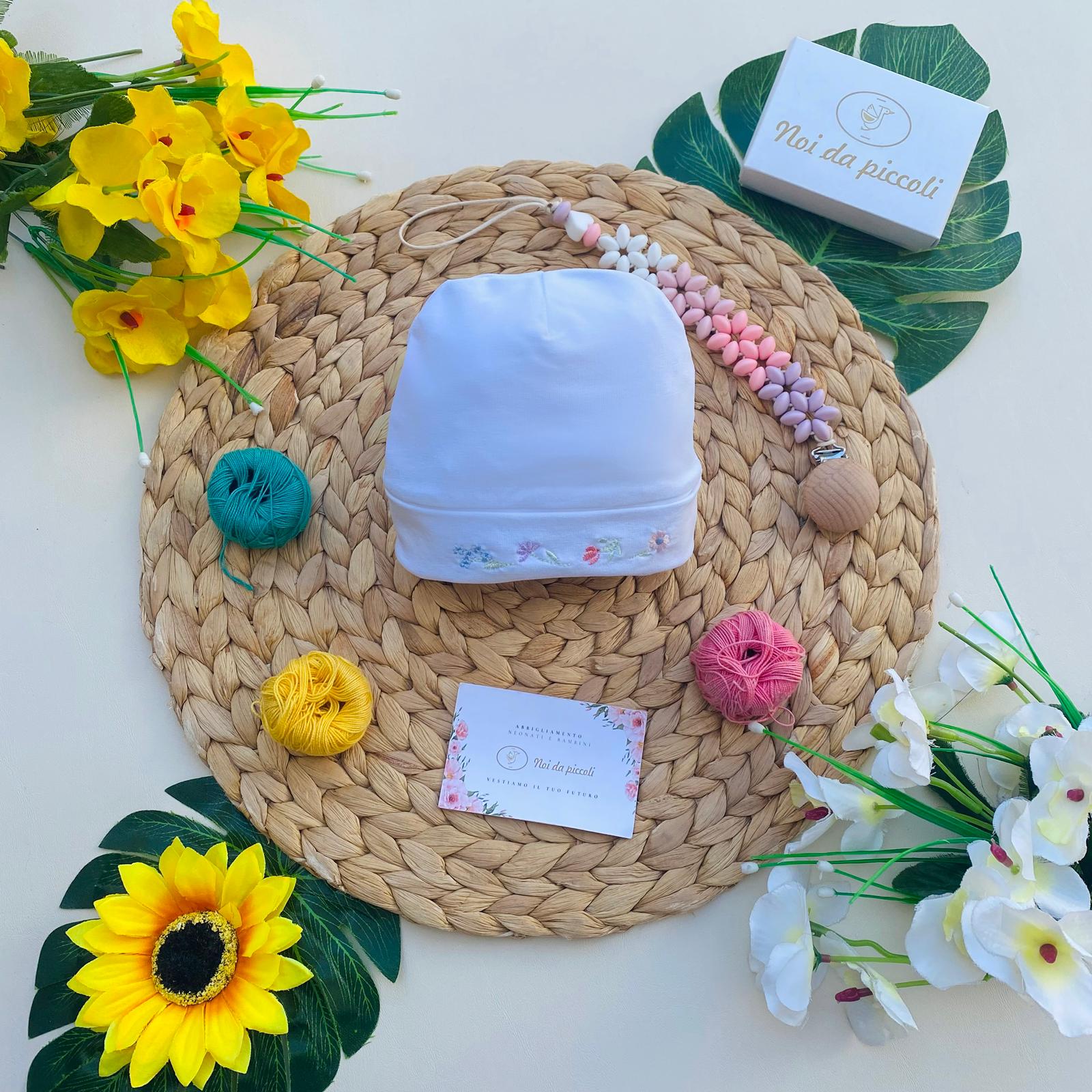 SET 3 PIECES WITH LITTLE FLOWERS AND POMPOMS Black