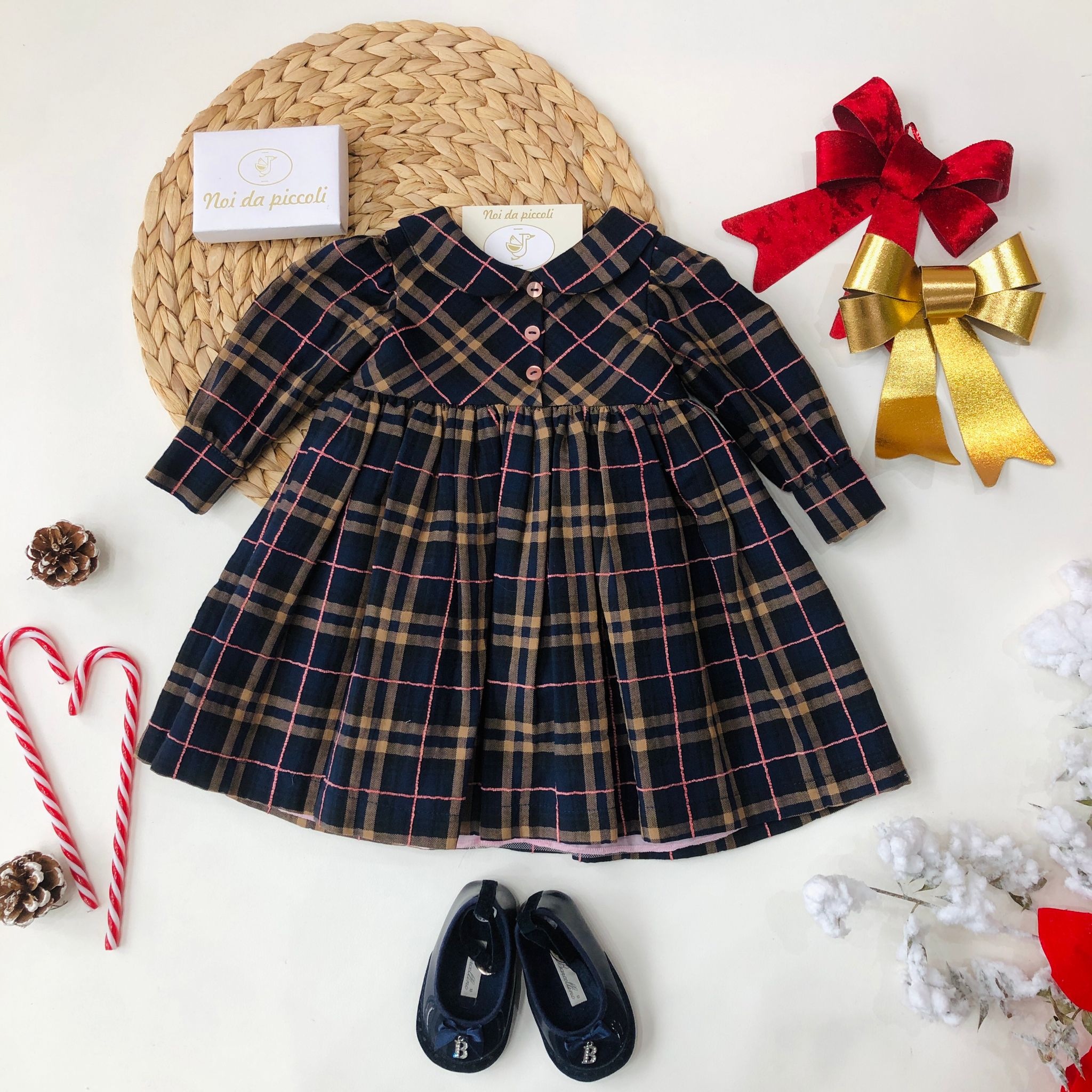 beautiful dress in earth and blue tones, a little princess ready to shine!