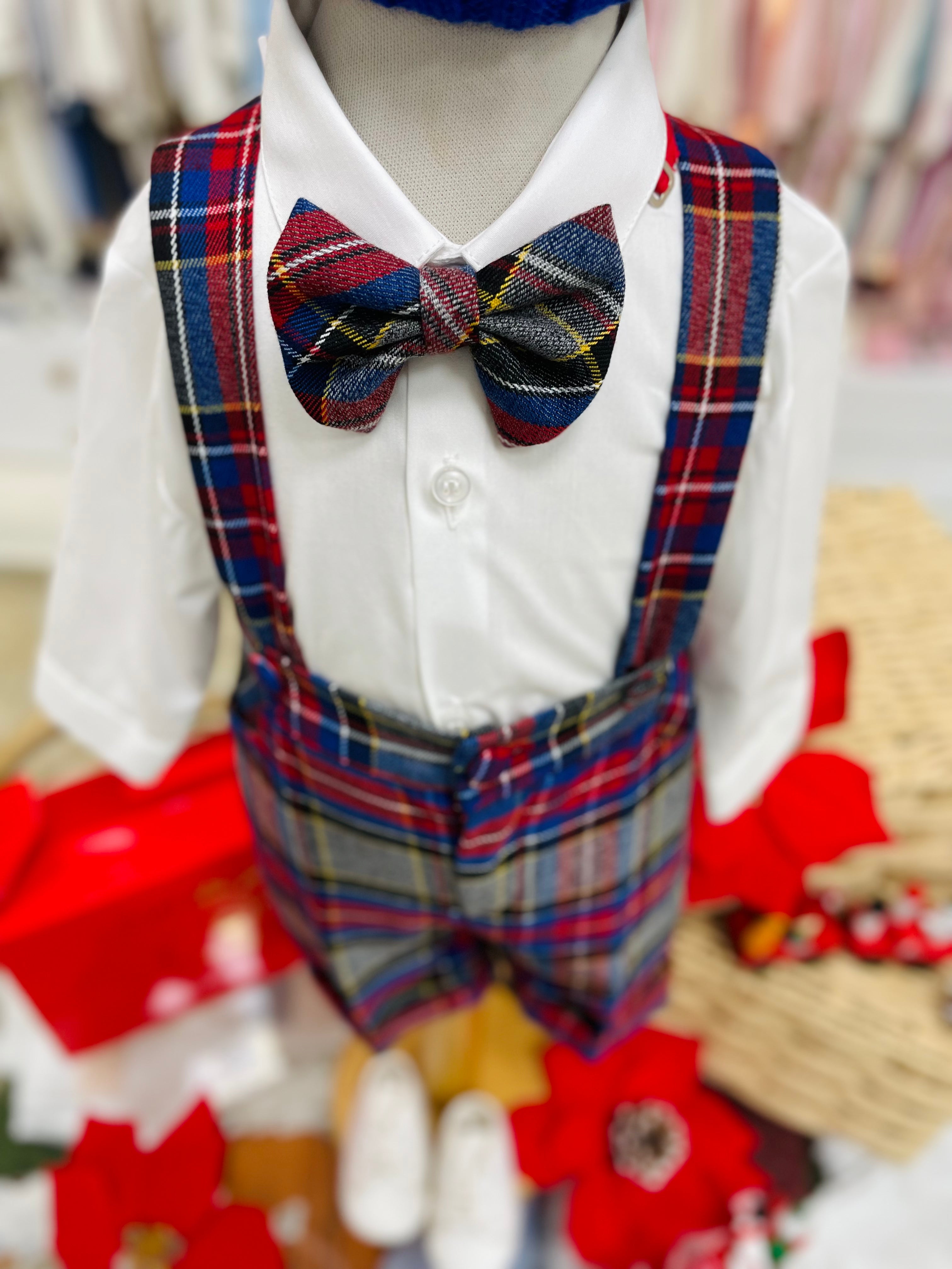 White shirt with dungarees and super tasty bow tie, beautiful and tender colors for your love!