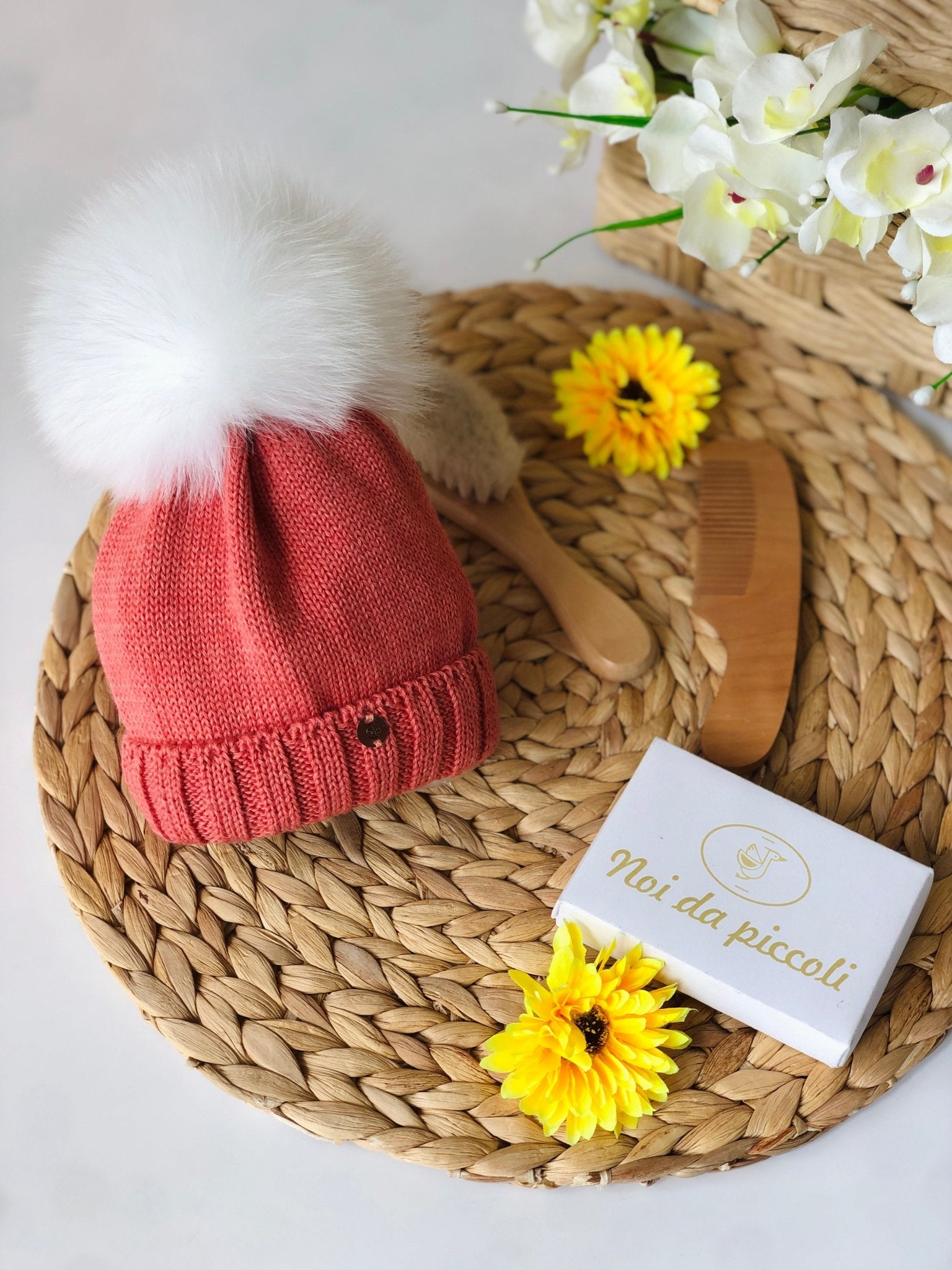 WHITE SALMON PON POM WOOL AND FOX CAP