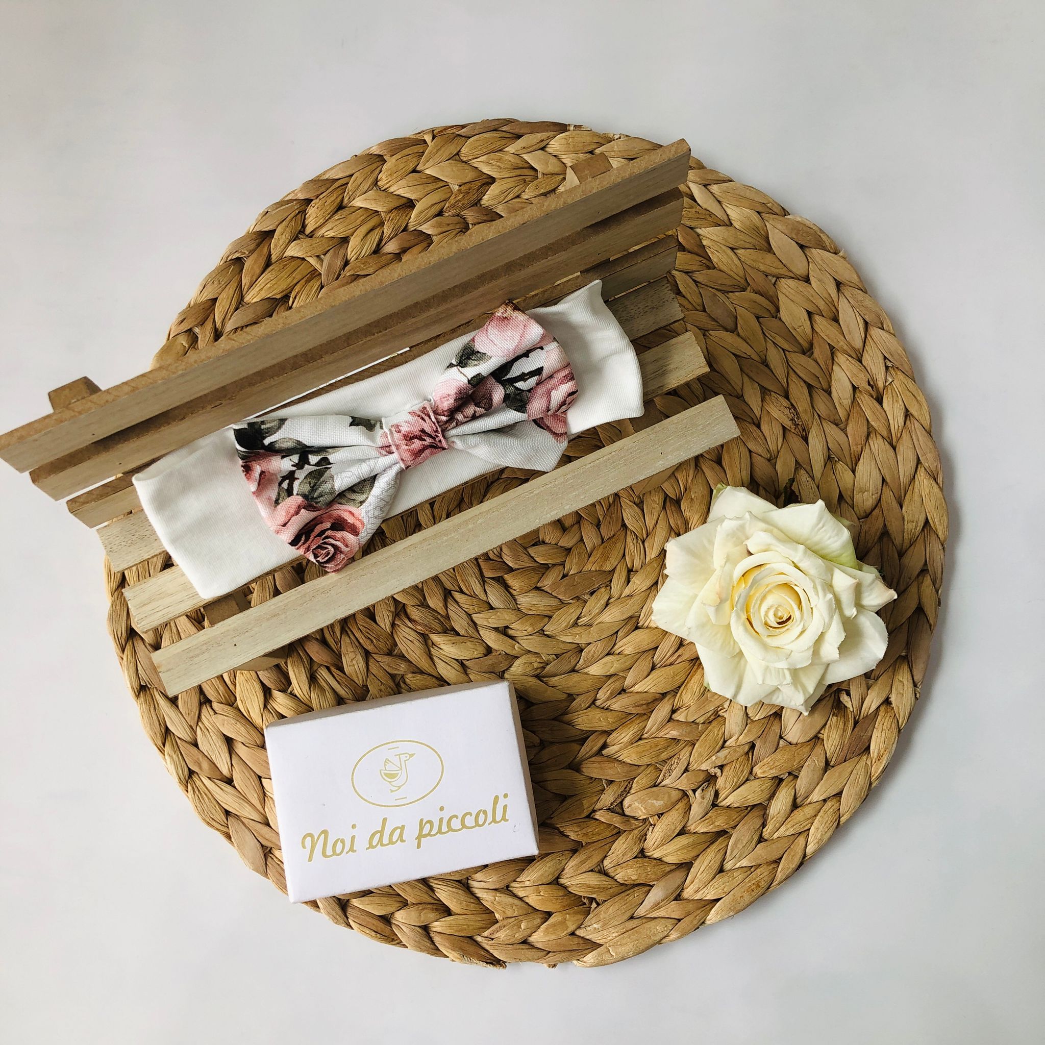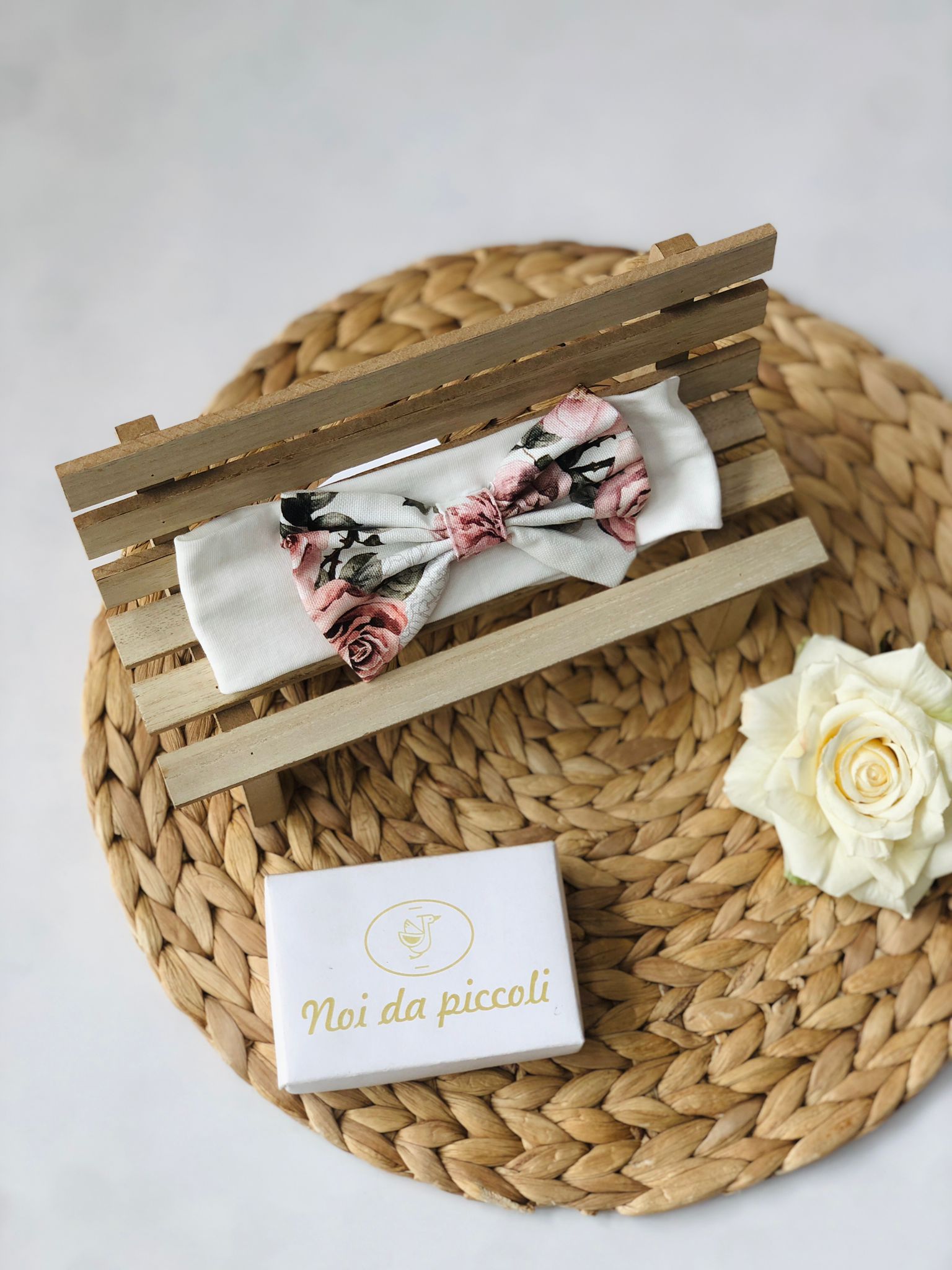 WHITE HEADBAND WITH ROSE AND PEONIE BOW