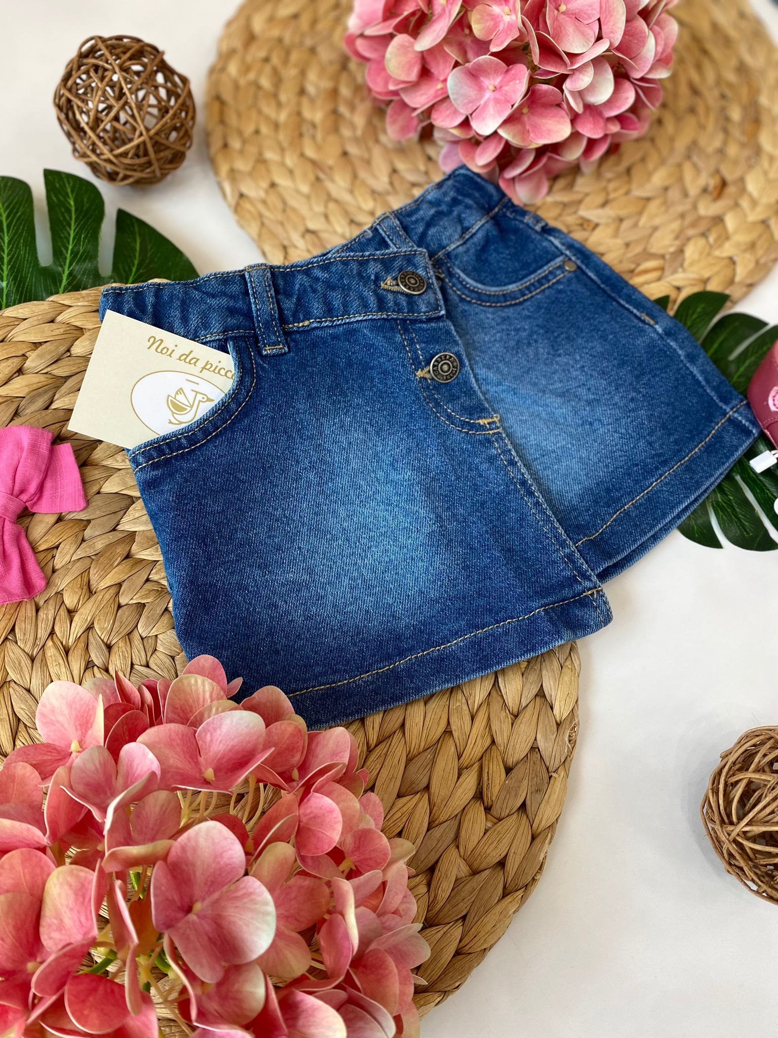 This delightful denim skirt stands out for its simple elegance and enveloping comfort. Made from soft denim, it features a delicate blue shade that pairs perfectly with any outfit. The small details, such as the neat stitching and the refined design, make it an irresistible garment. A touch of sweetness is given by the bows that adorn the look, evoking moments of joy and carefreeness. Ideal for any occasion, it is a must-have in the wardrobe of the little ones.