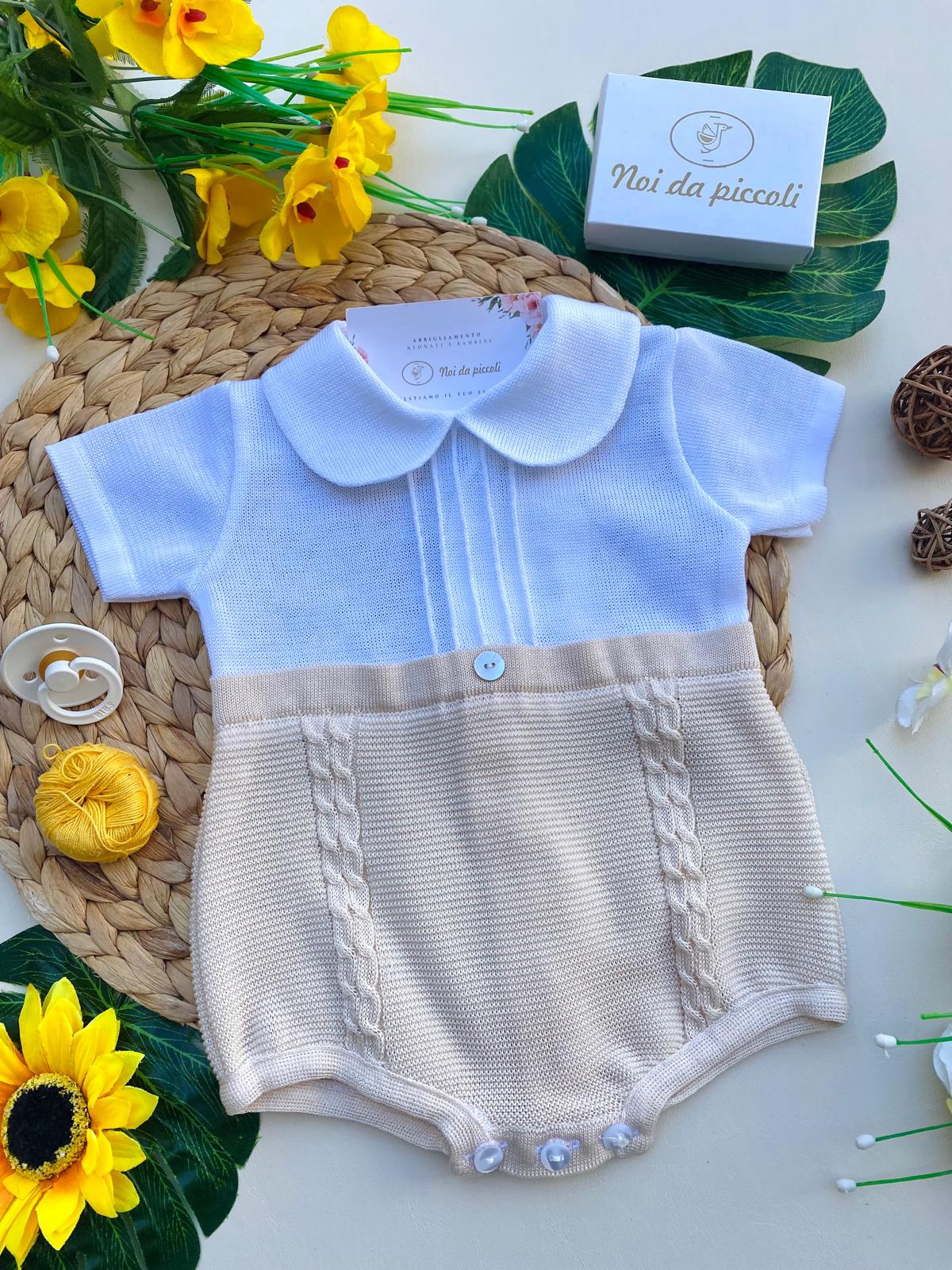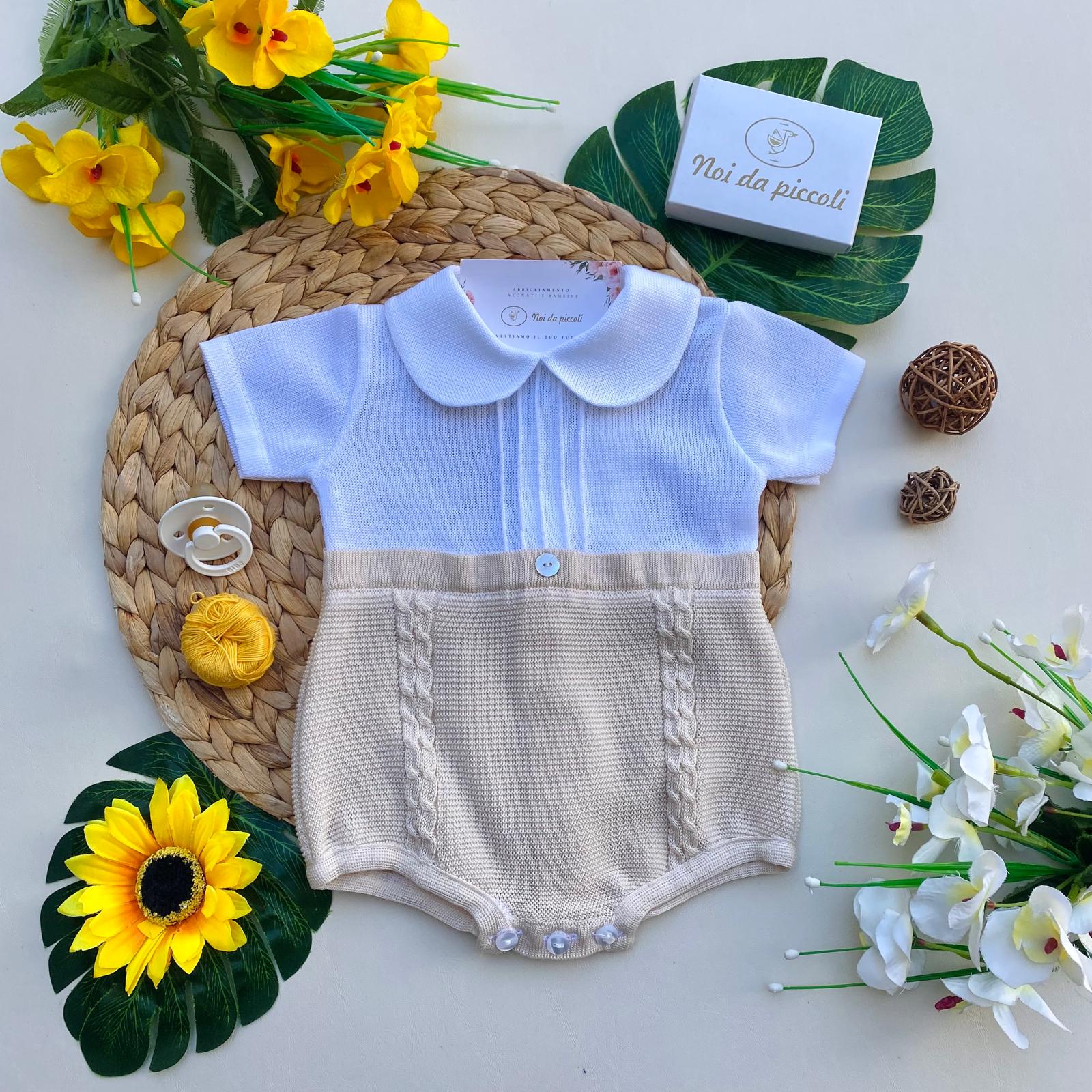 PAGLIACCETTO IN COLORAZIONE BIANCO CON RIFINITURE IN CREMA - Noi da piccoli