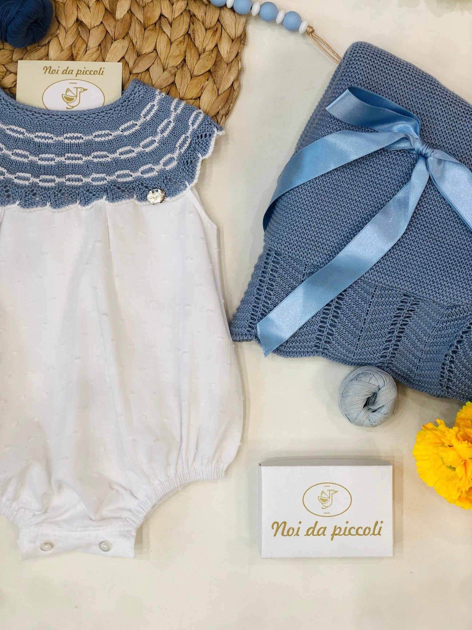 Romper in fresh hypoallergenic yarn and white cotton, for your love!