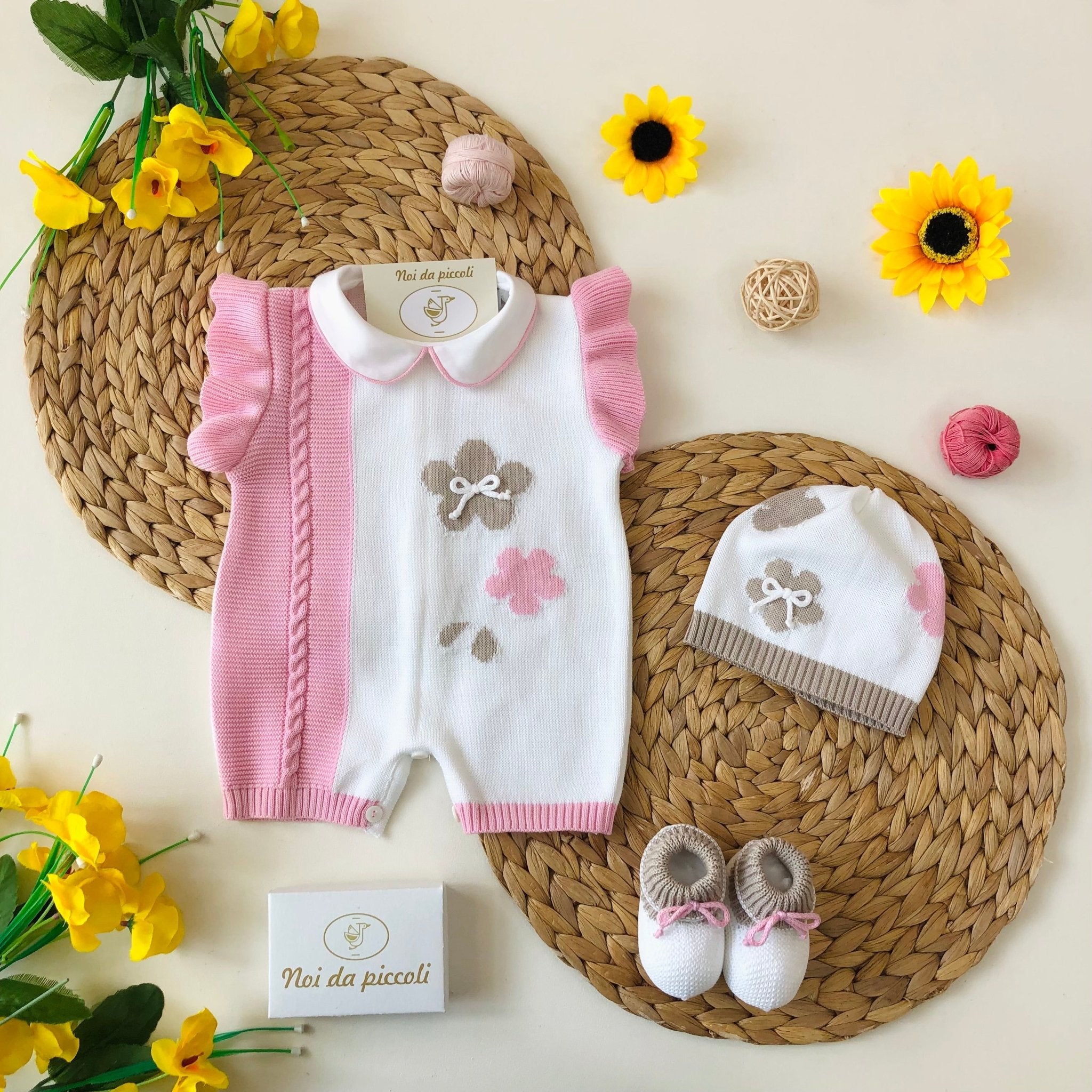 ROMPER IN WHITE PINK BEIGE COTTON THREAD