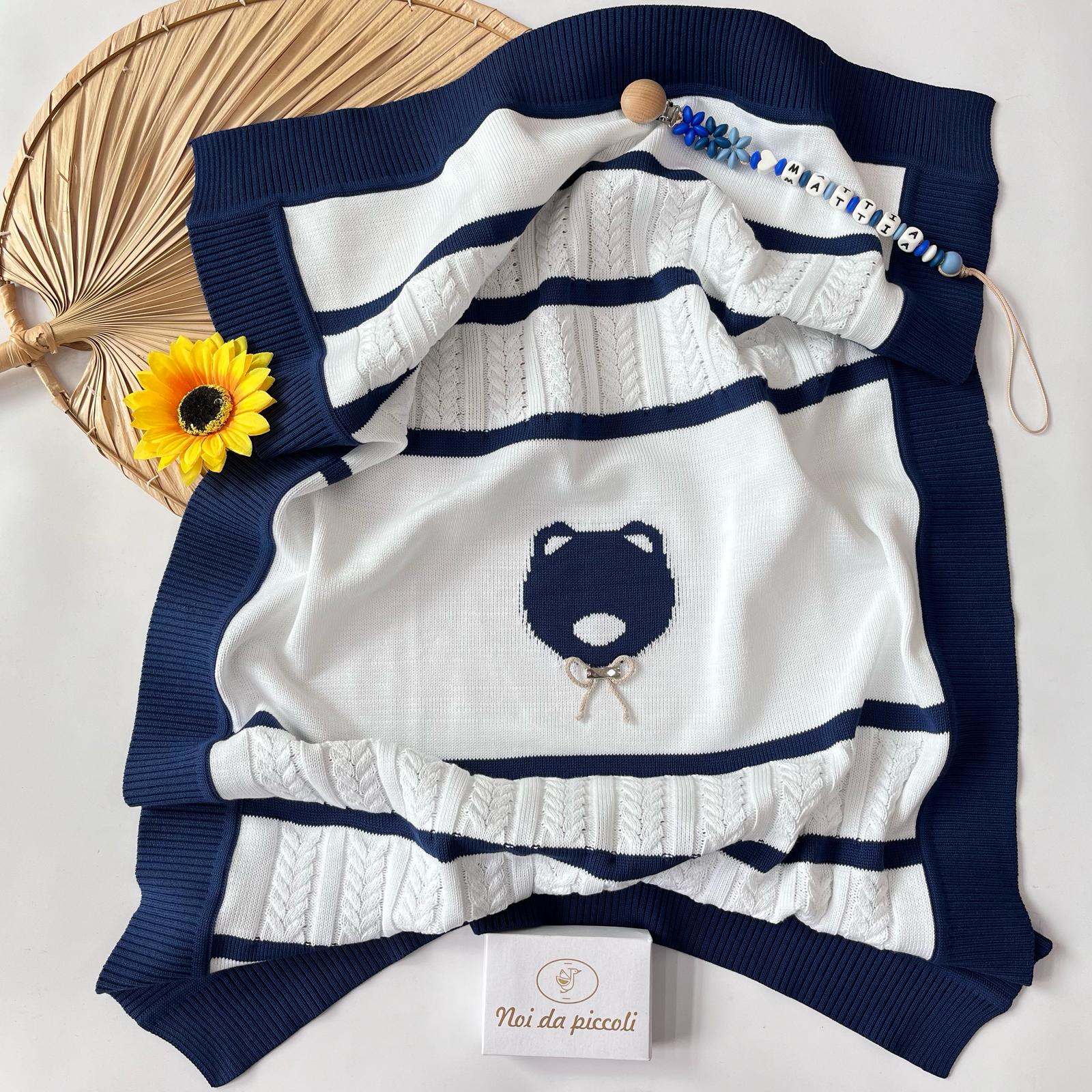 100% COTTON BLUE AND WHITE TEDDY ROBE WITH SLIPPERS
