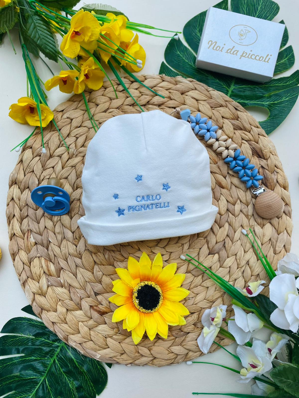 SET CAPPELLINO E BAVETTINA FIOCCHETTINO CINIGLIA SALVIA