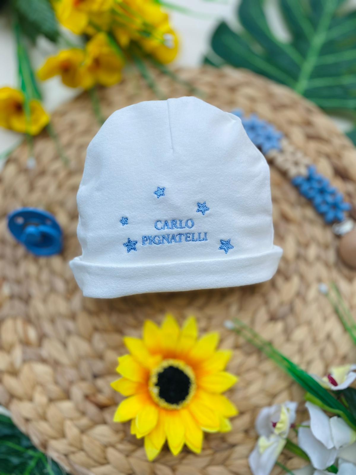 CAPPELLINO BIANCO RICAMATO CON FIOCCHETTINO CON CILIEGINE