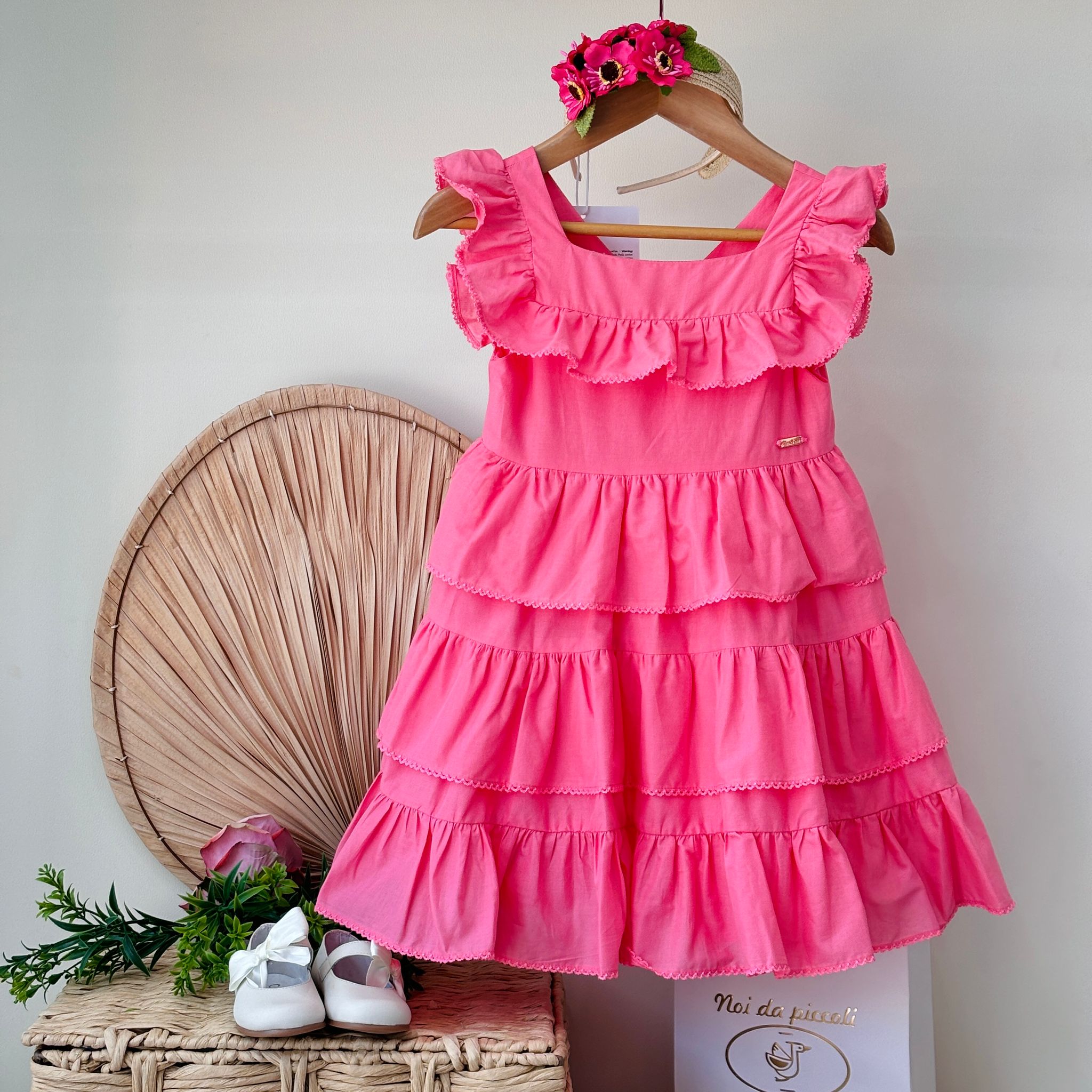 Un incanto di dolcezza, questo abitino cerimoniale incarna l'eleganza perfetta per ogni occasione speciale. La delicata tonalità corallo si sposa armoniosamente con il tulle leggero, arricchito da piccole applicazioni che brillano come stelle. Un fiore adorabile decora il lato, portando un tocco romantico e fresco. Il bolerino, in una nuance più profonda, completa splendidamente l'outfit, offrendo calore e stile. Lascia che la tua piccola si senta unica e preziosa in questo meraviglioso capo d'abbigliamento.