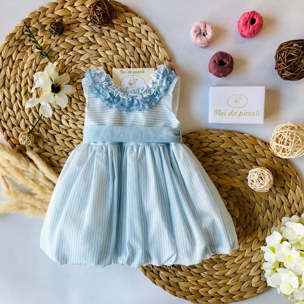 Un delizioso abitino che incanta con il suo dolce azzurro e le delicate righe. La morbida texture in cotone e lino avvolge la tua piccola in un abbraccio di comfort. Un raffinato ruffle arricchisce il colletto, mentre la gonna ampia danza dolcemente con ogni passo. Perfetto per ogni occasione, questo abito trasmette un’eleganza senza tempo, rendendo ogni movimento un momento da ricordare. Aggiungi un tocco di magia al guardaroba della tua bambina!