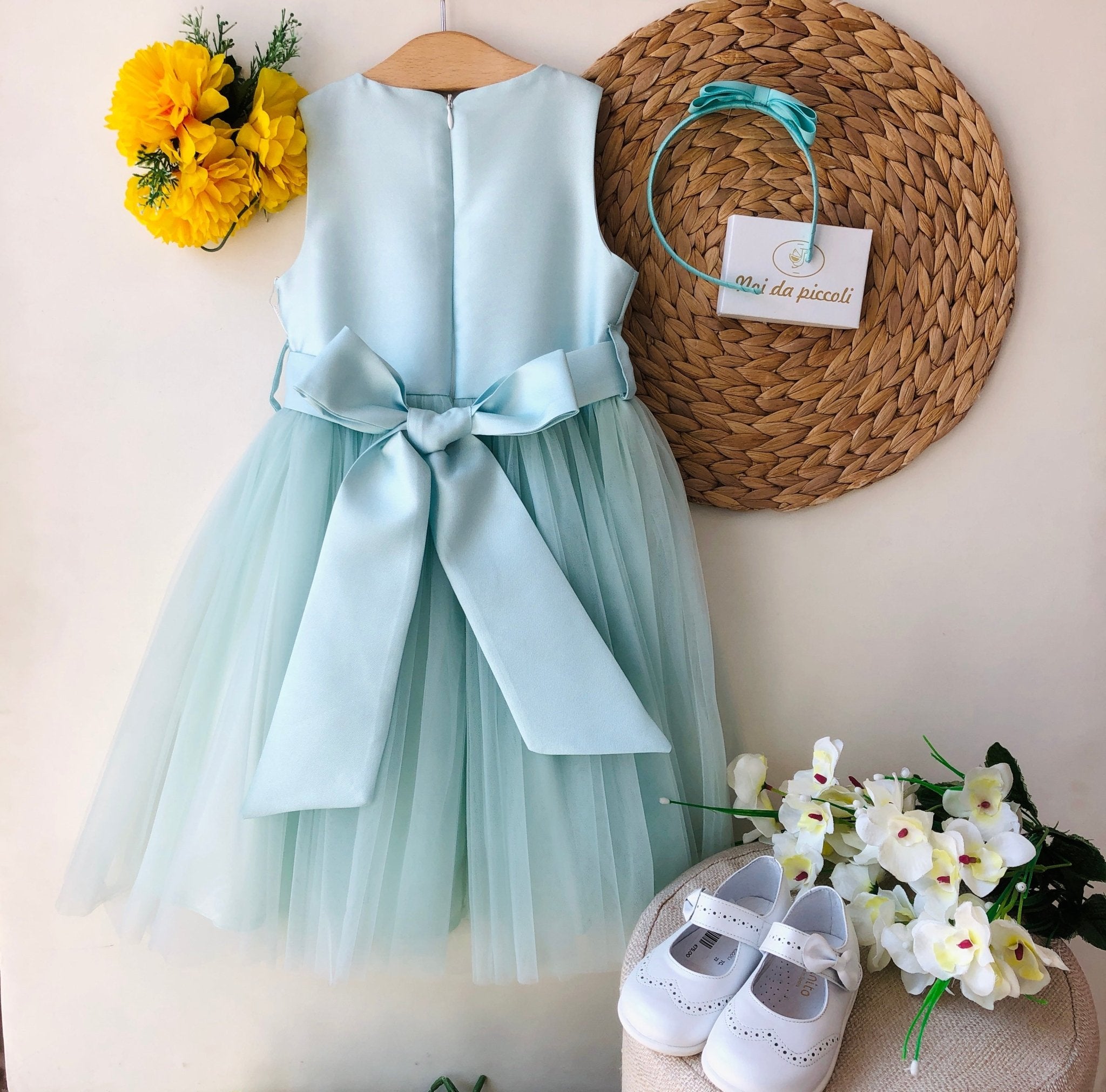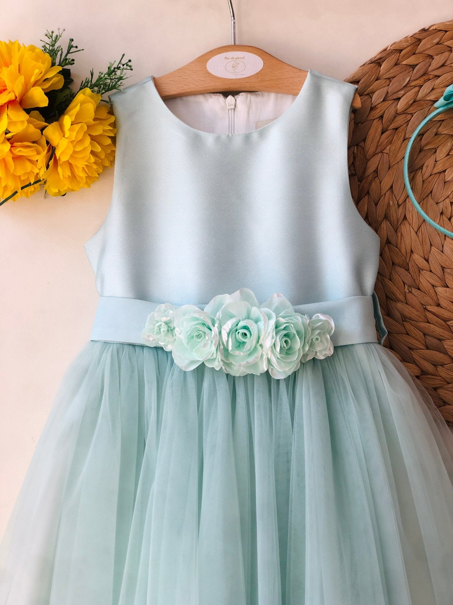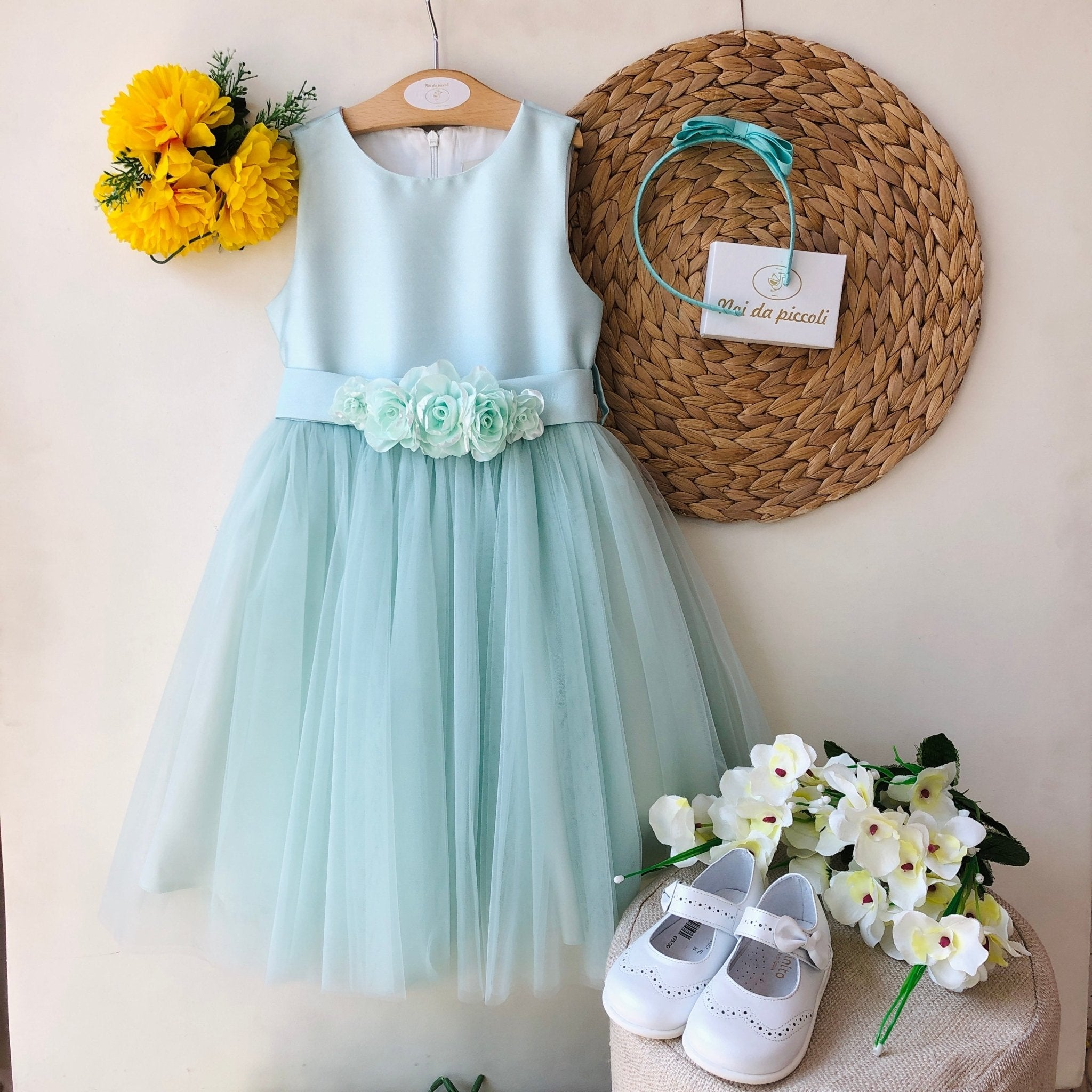 ABITINO ELEGANTE VERDE ACQUA CON FIORE VERDE TULLE