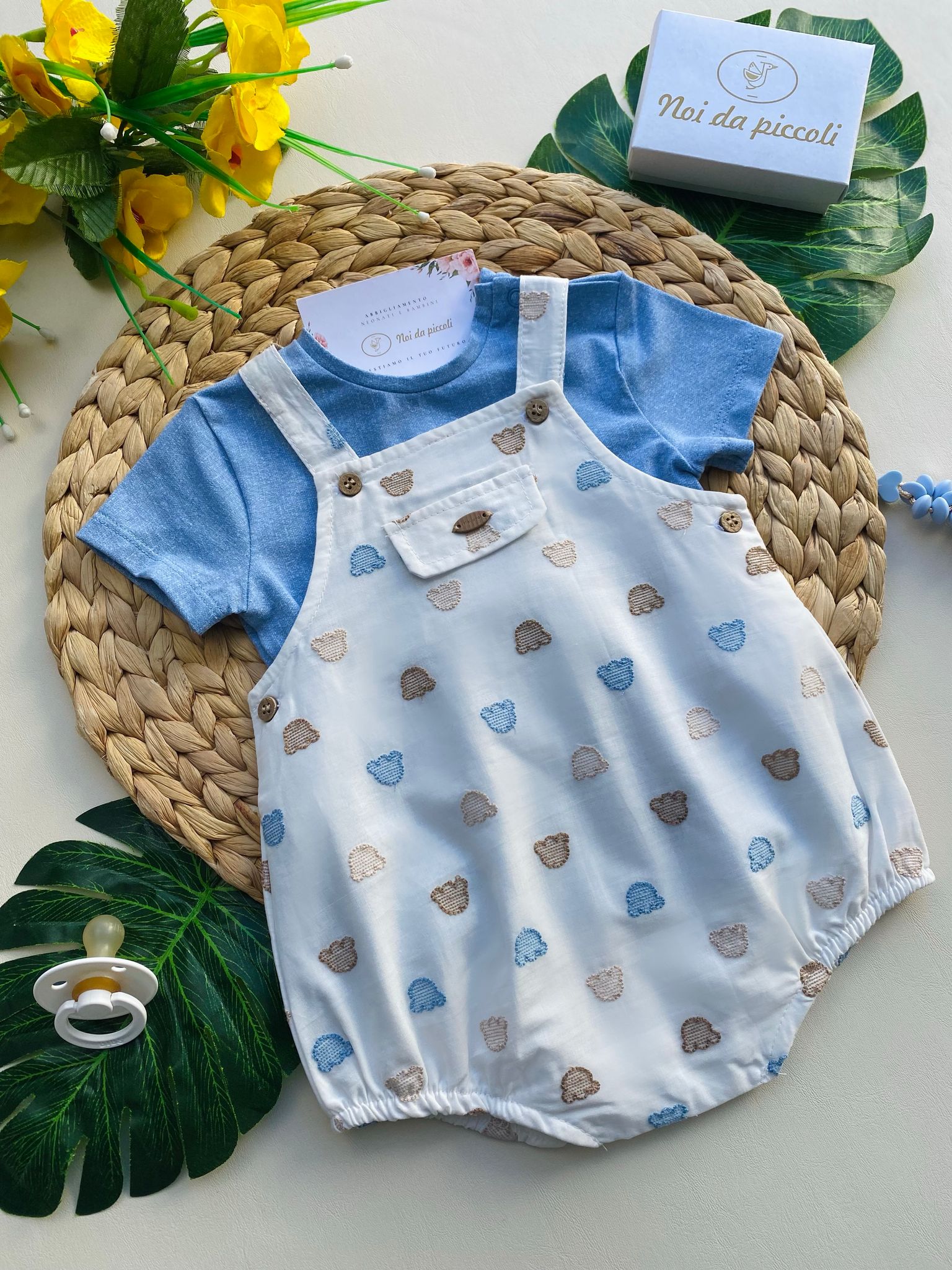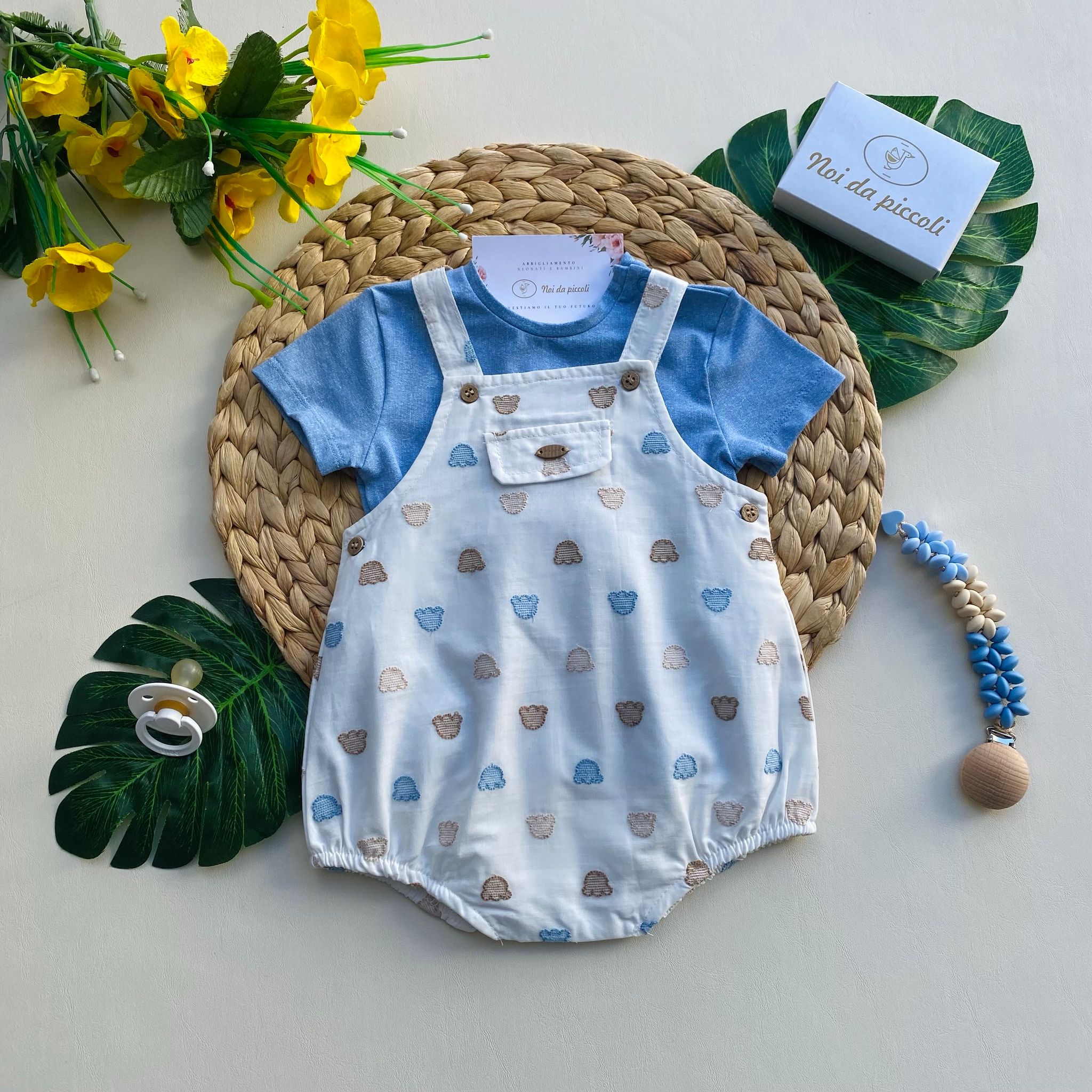 completo 2 pz con salopette con orsetti e MAGLIA cielo
