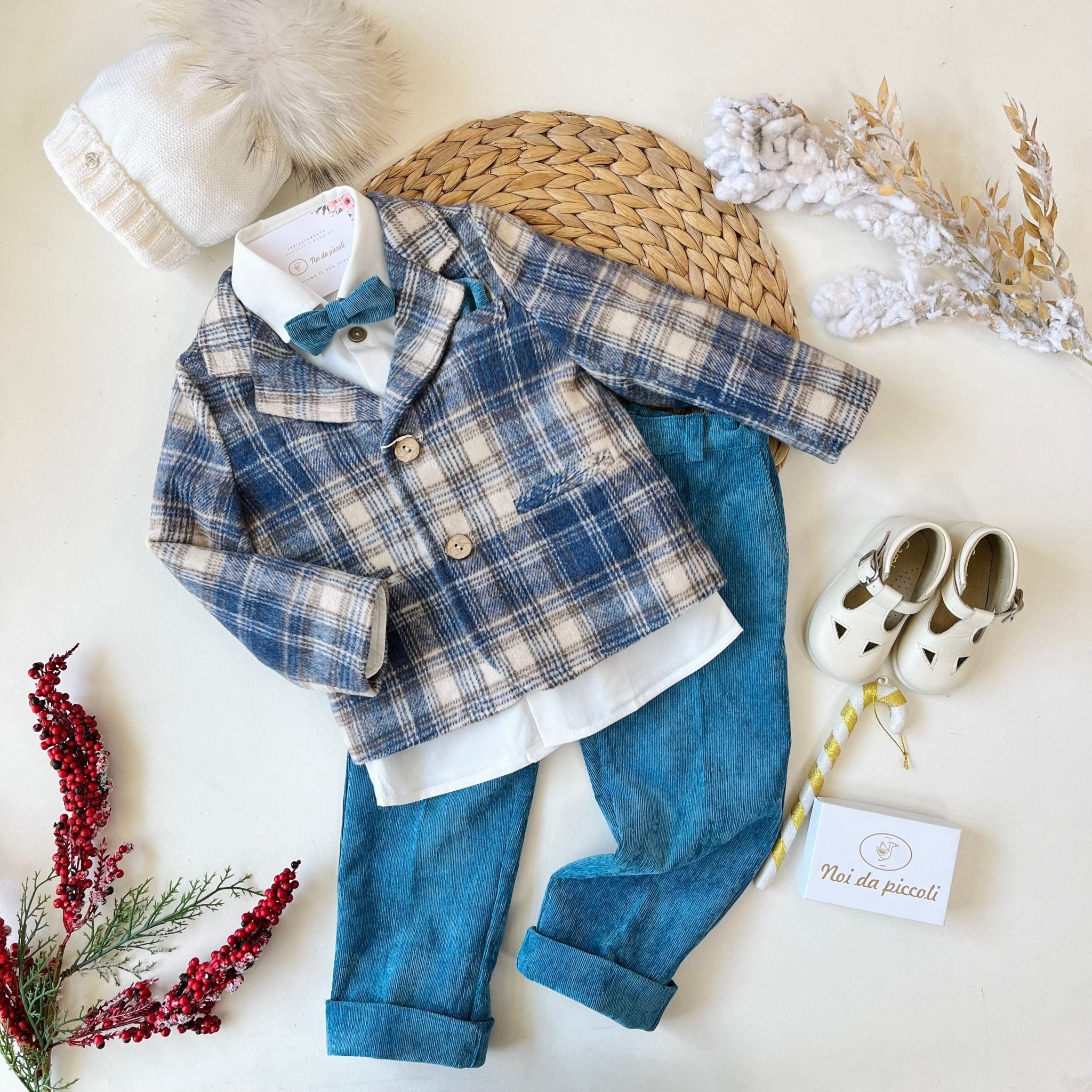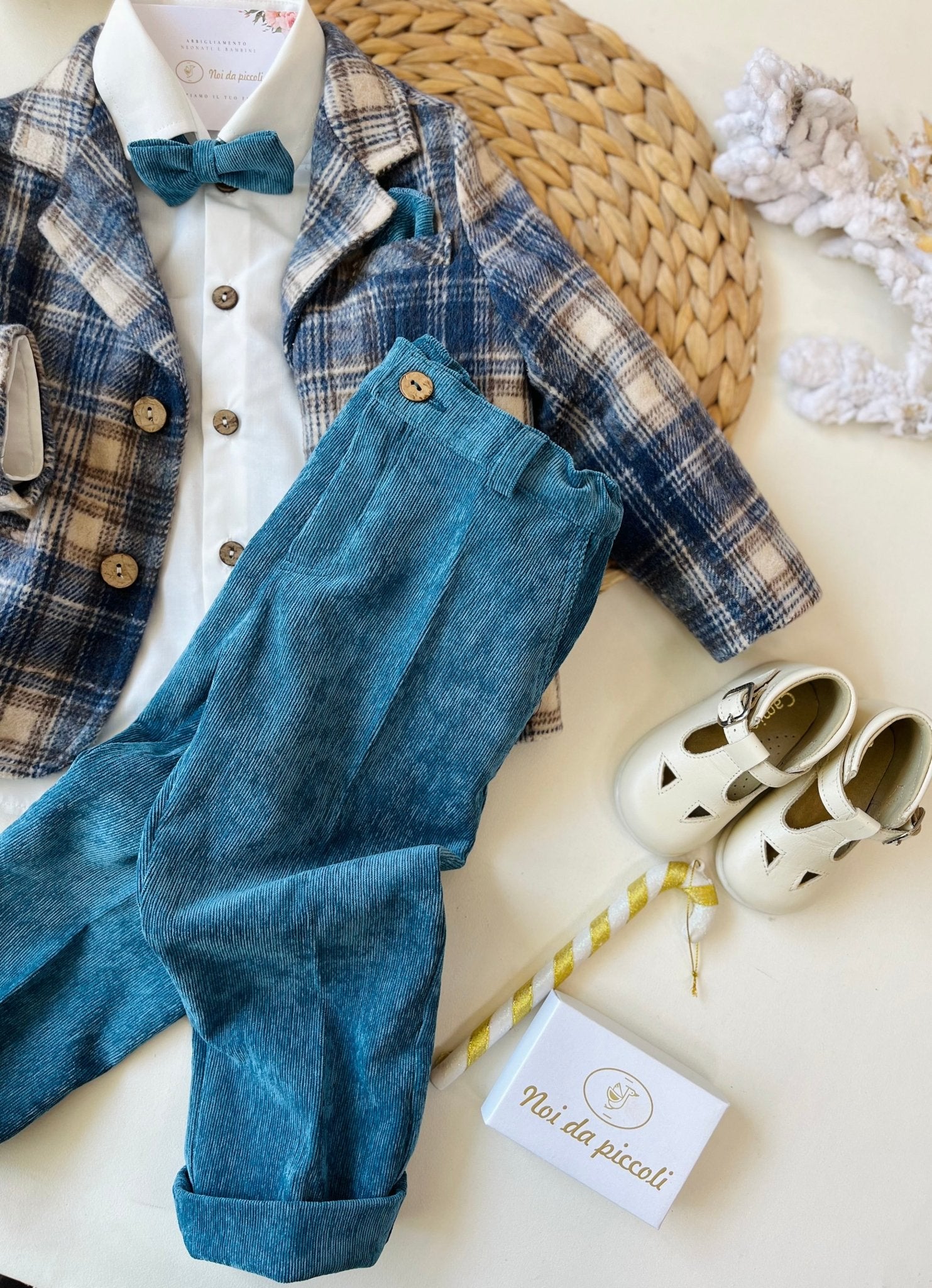 Camicina, pantalone in velluto, giacca e papillon per un piccolo grande uomo , colori belli e teneri per il tuo amore!