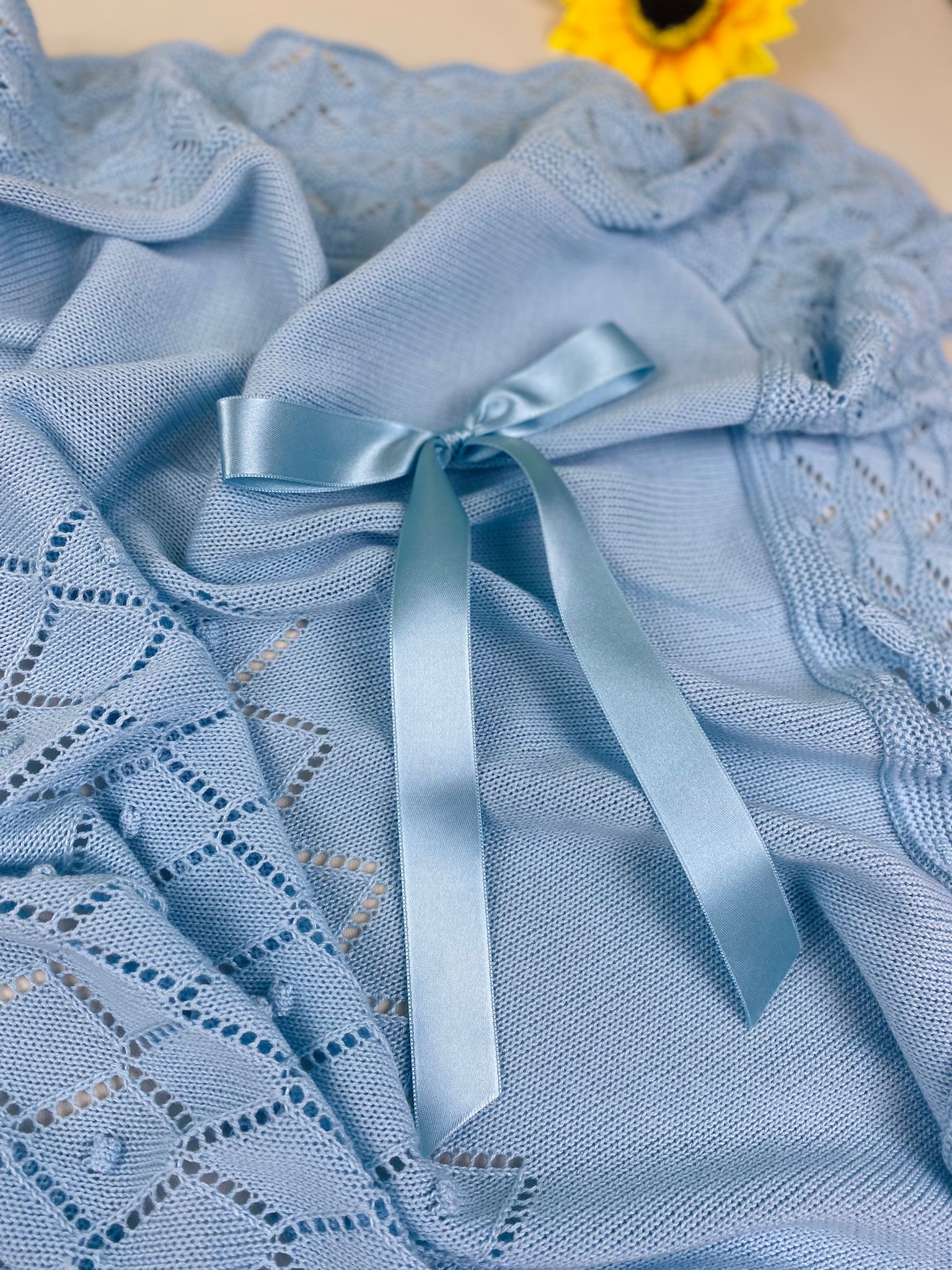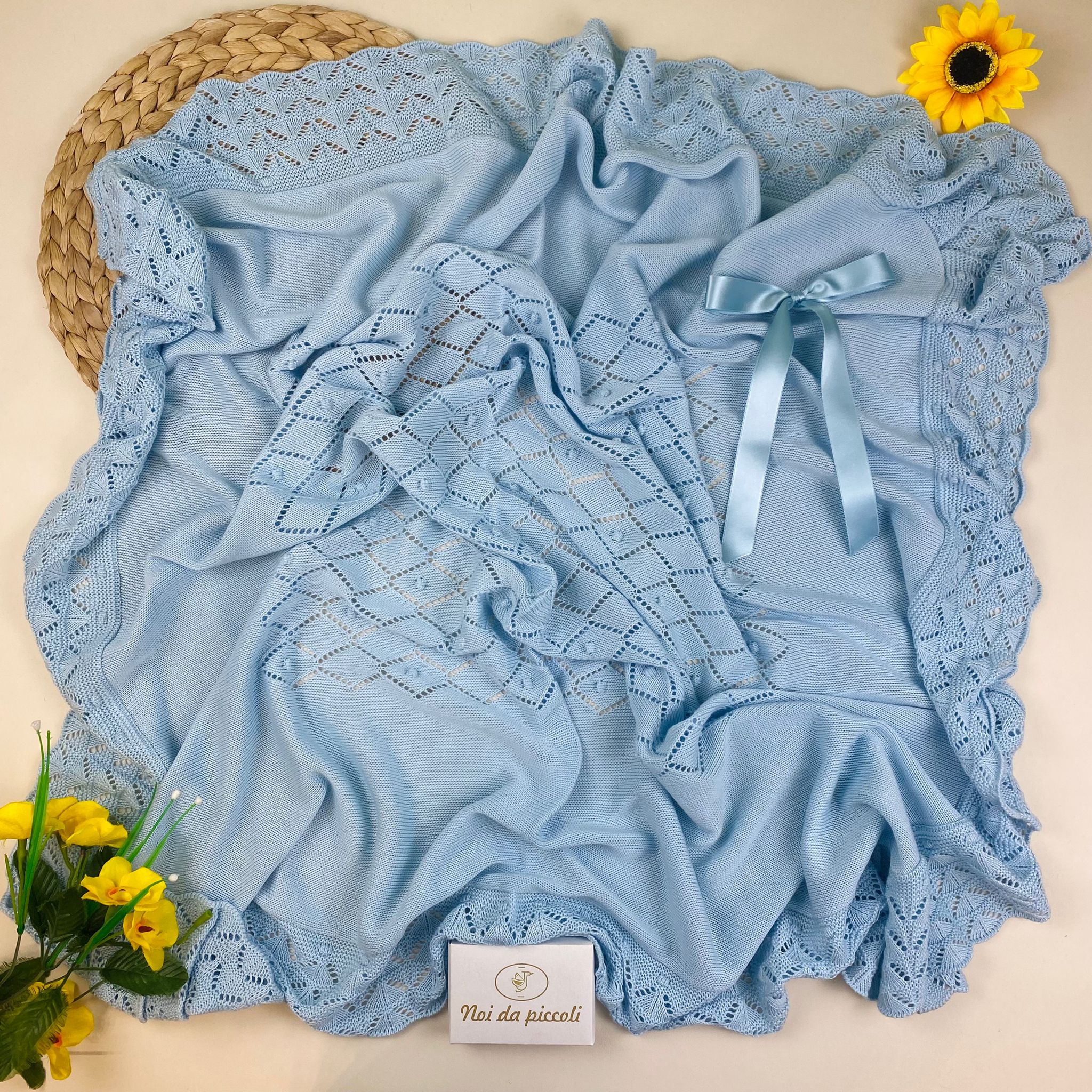 copertina in cotone in colorazione celeste con ricamini a forma di rombo molto carino per il tuo amore