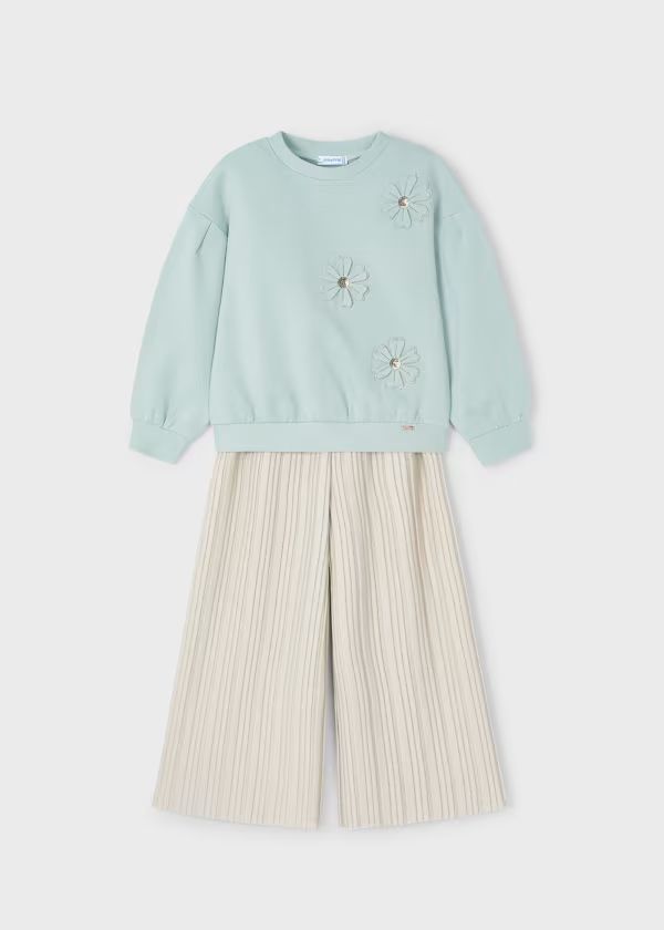 Felpina con pantalone a plisse oro taglio a palazz, un completo super carino per la tua signorina!