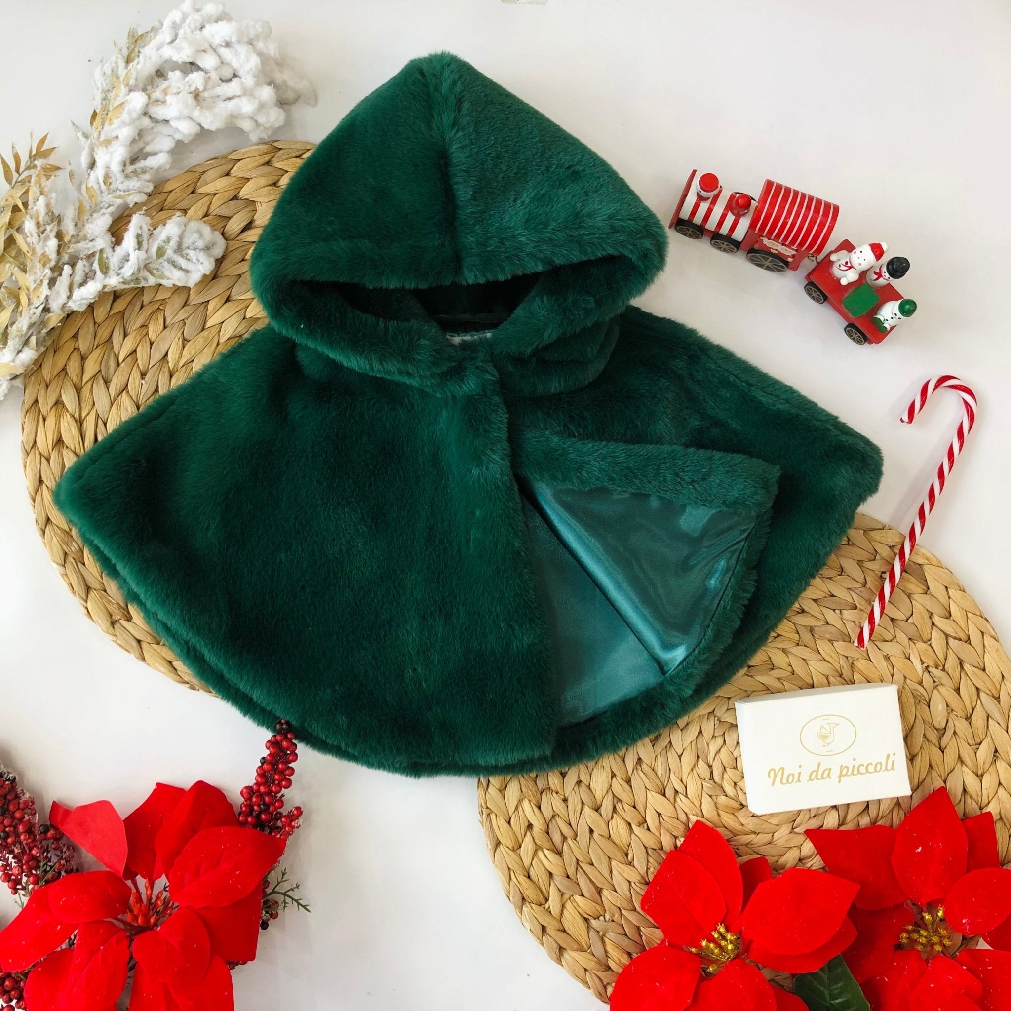 mantellina con cappuccio in pelliccia ecologica per la tua piccola!