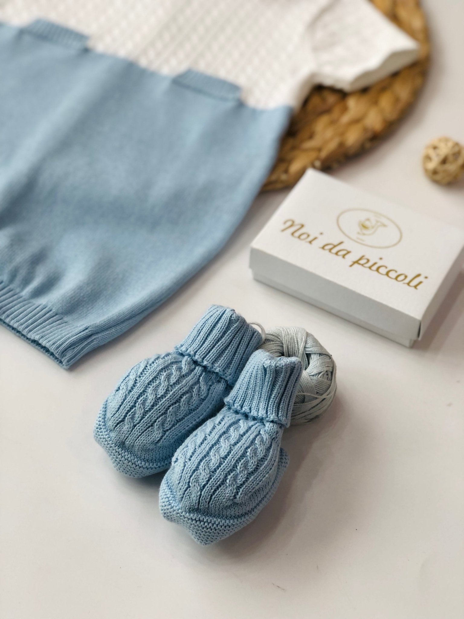 PAGLIACCETTO CON BABBUCCE BIANCO E AZZURRO FILO DI COTONE