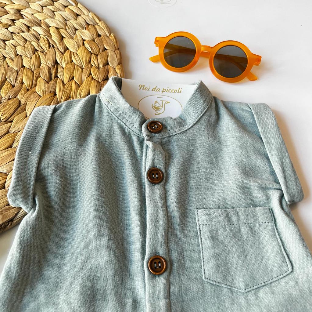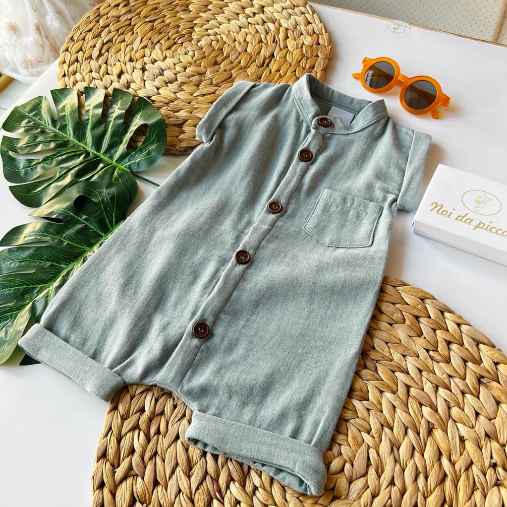 Questo adorabile pagliaccetto in cotone, con il suo delicato colore petrolio, è perfetto per avvolgere il tuo piccolo in un abbraccio morbido e confortevole. Le cuciture curate e il colletto elegante aggiungono un tocco di raffinatezza, mentre la taschino frontale rende il look ancora più giocoso. I dettagli di design, come l'orlo arrotolato, conferiscono un'aria casual e trendy. Un capo ideale per ogni occasione, ideale da abbinare con accessori creativi e colorati. Rendi ogni momento speciale!
