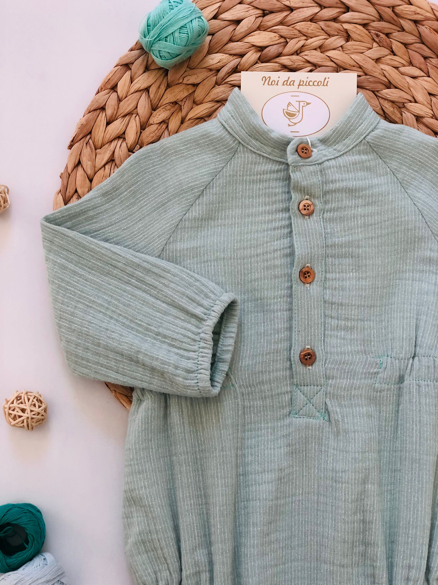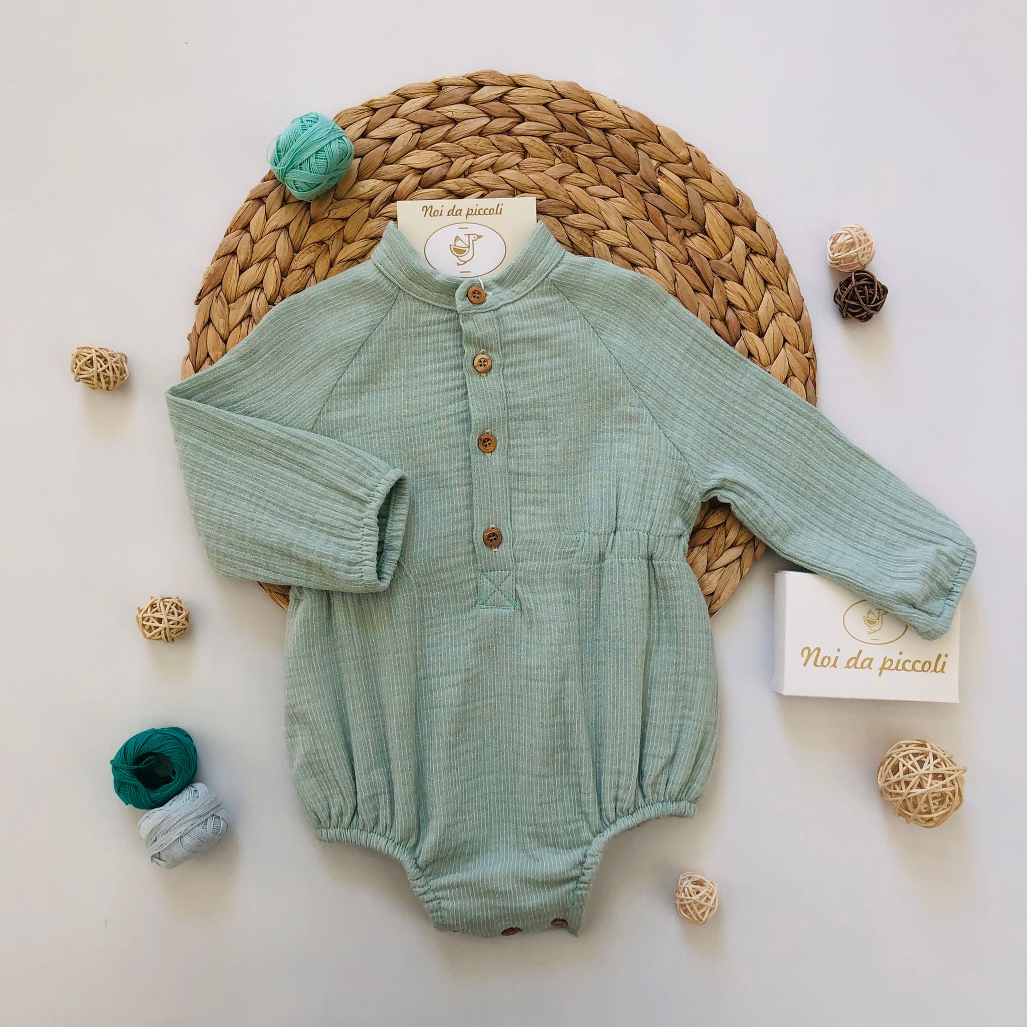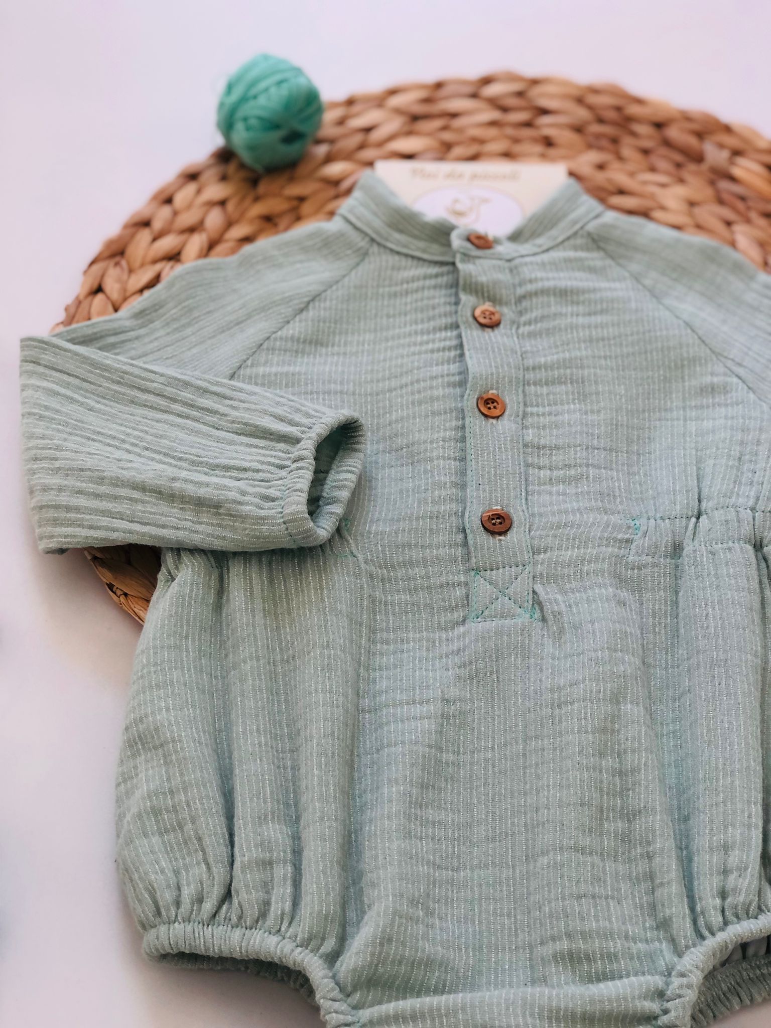 Pagliaccetto salvia in caldo cotone maniche lunghe con bottoncini marroncini , colori belli e teneri per il tuo amore!