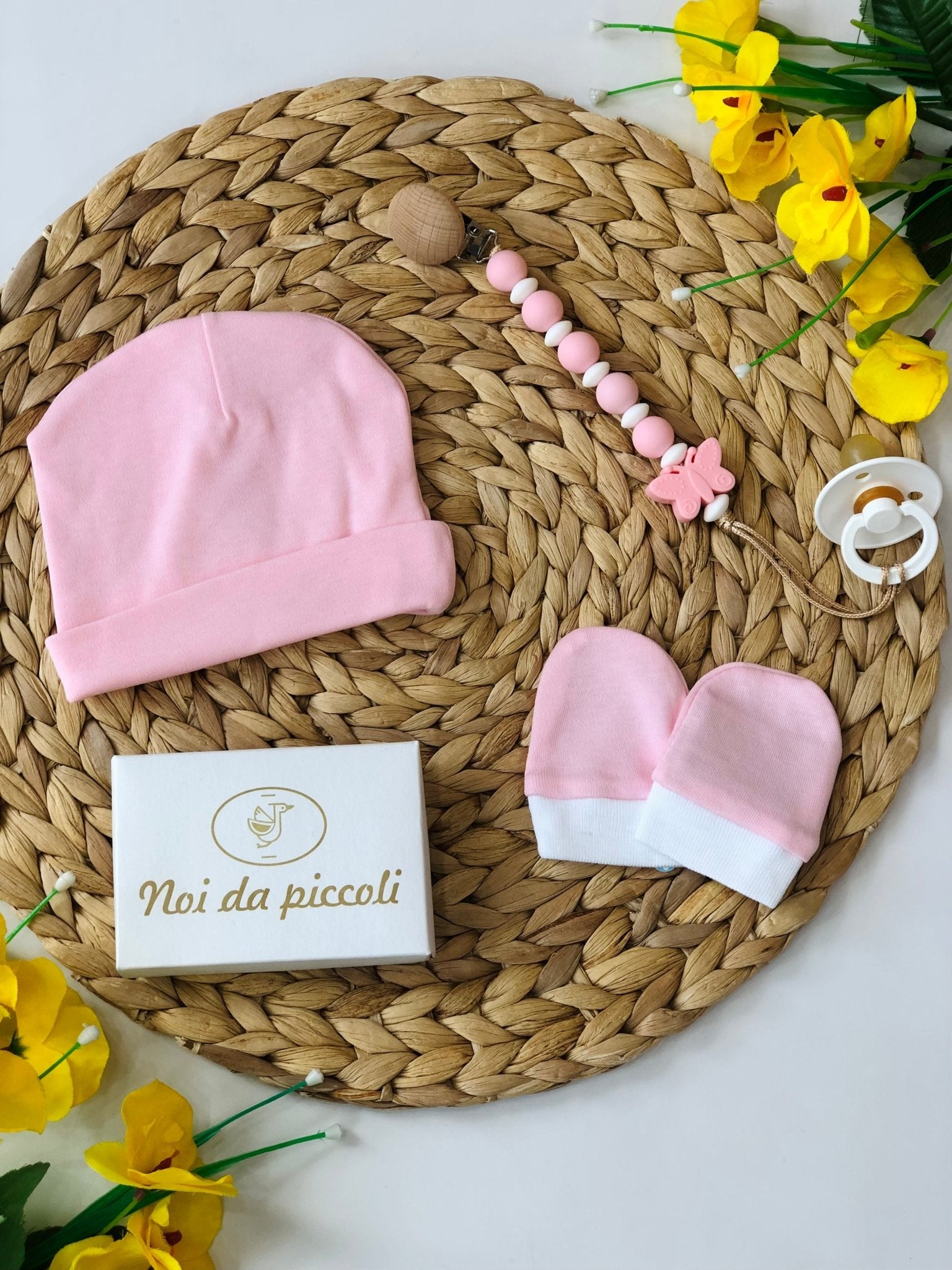 Un tenero abbraccio di dolcezza per le vostre piccole. Questo set comprende un cappellino e guantini in morbidissimo cotone, delicati e avvolgenti, in una tonalità rosa che evoca tenerezza. I dettagli curati, come le cuciture precise e la piacevole texture, rendono ogni pezzo unico. Ideali per completare un outfit e proteggere le manine delicate dal freddo, questi accessori sono perfetti per ogni momento speciale. Lasciatevi conquistare dalla loro semplicità e grazia.