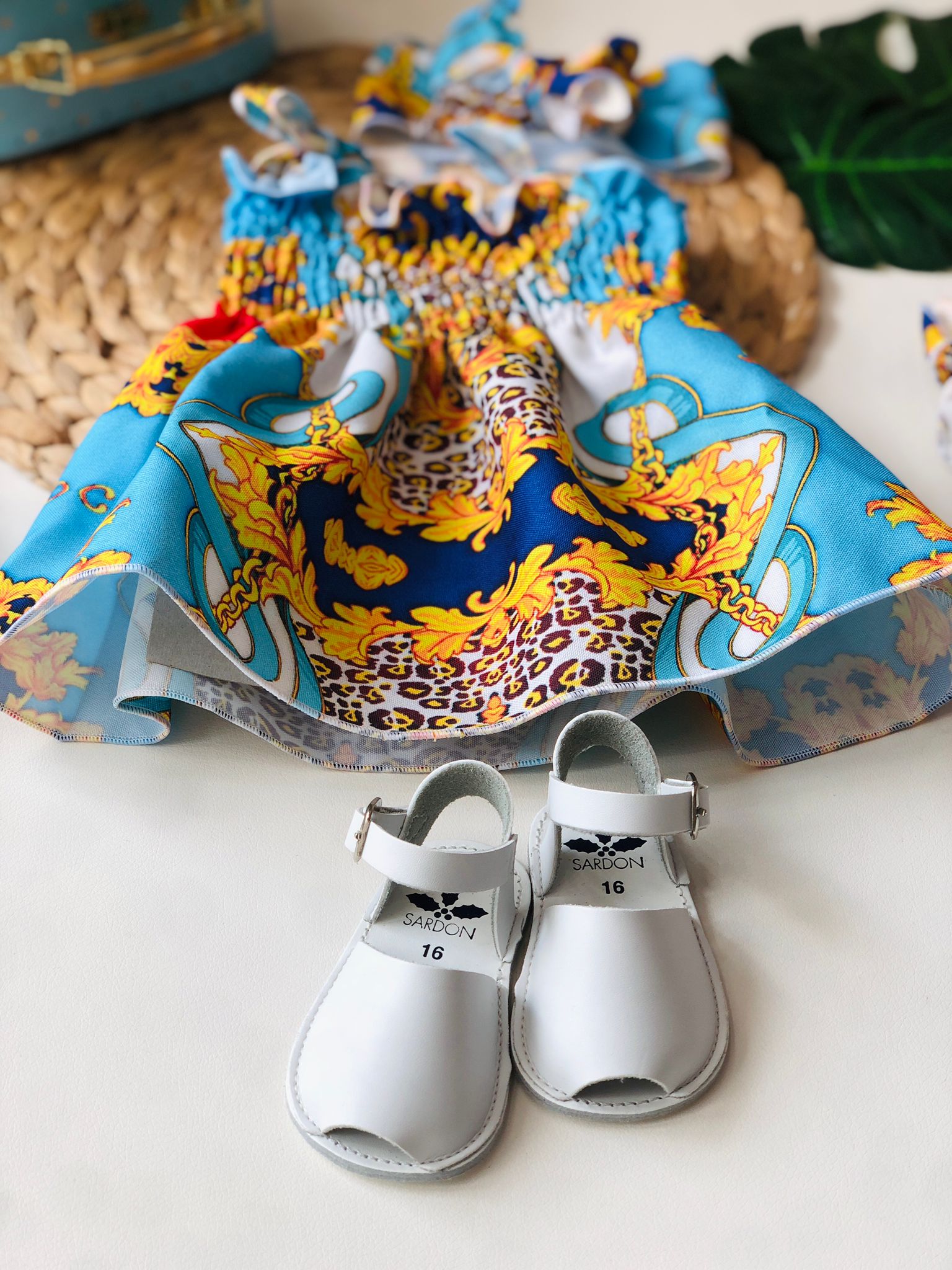 Un abito incantevole che evoca i colori vivaci della Costiera, perfetto per le piccole sognatrici. La vestina è caratterizzata da un corpetto arricciato che si adatta delicatamente, mentre le bretelline possono essere annodate in un dolce fiocco. I dettagli in pizzo e le fantasie intricate donano un tocco di eleganza e originalità, rendendo ogni momento speciale. Completa il look con accessori coordinati per un’apparenza indimenticabile e affascinante.
